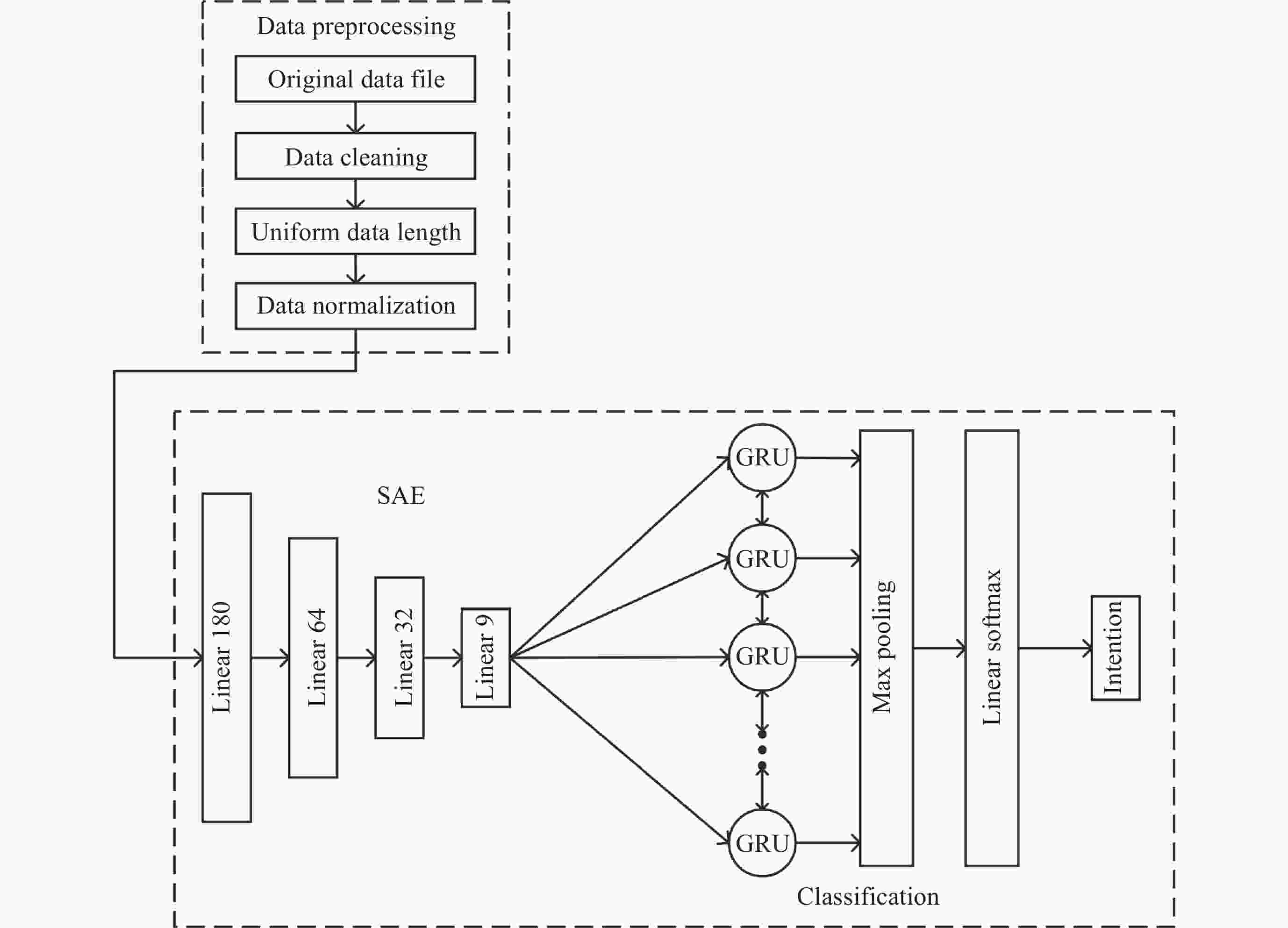 摘要: 在信息化条件下, 空间环境变得日益复杂, 空间非合作目标数量日益增长, 地面操作人员难以迅速准确地根据非合作目标的运动规律识别其意图, 因此提出基于堆叠自编码器(SAE)和门控循环网络(GRU)的空间非合作目标行为意图识别模型, 用于协助地面操作人员识别非合作目标的意图. 该模型利用自编码器对时间序列数据进行压缩, 提取其中的关键特征, 并采用GRU网络对轨迹进行分类. 由于目前尚无公开的非合作目标行为的轨道数据可供使用, 仅依靠少量已知数据难以充分训练模型. 为解决样本不足导致识别效果不佳的问题, 提出一种仿真样本生成方法, 通过仿真得到大量目标行为的轨道数据, 可用于空间非合作目标行为意图的识别. 得到仿真数据后, 将仿真数据集作为输入开展实验, 结果显示, 与仅使用长短期记忆网络(LSTM)、门控循环单元–全卷积网络(GRU-FCN)、堆叠自编码器(SAE)以及反向传播(BP)等单一模型相比, 本方法在准确率、损失值性能指标上均有显著提升, 准确率达到了97.8%.Abstract: Under the conditions of informatization, the space environment has become increasingly complex, and the number of non cooperative targets in space is growing. Ground operators find it difficult to quickly and accurately identify the intentions of non cooperative targets based on their motion patterns. Therefore, a spatial non cooperative target behavior intention recognition model based on Stacked Autoencoder (SAE) and Gated Recurrent network Unit (GRU) was proposed to assist ground operators in identifying the intention of non cooperative targets. This model utilizes an autoencoder to compress time series data, extract key features, and uses a GRU network to classify trajectories. At present, there is no publicly available orbit data for non cooperative target behavior, and it is difficult to fully train the model with only a small amount of known data. To solve the problem of poor recognition performance caused by insufficient samples, a simulation sample generation method is proposed, which obtains a large amount of target behavior trajectory data through simulation for the recognition of spatial non cooperative target behavior intentions. After the simulation data is obtained, the simulation data set is used as the input. The experimental results show that compared with the single model only using the Long and Short Term Memory network (LSTM), GRU-FCN, SAE, and Back-Propagation (BP), this method has significantly improved the accuracy and loss value performance indicators, reaching 97.8% accuracy.