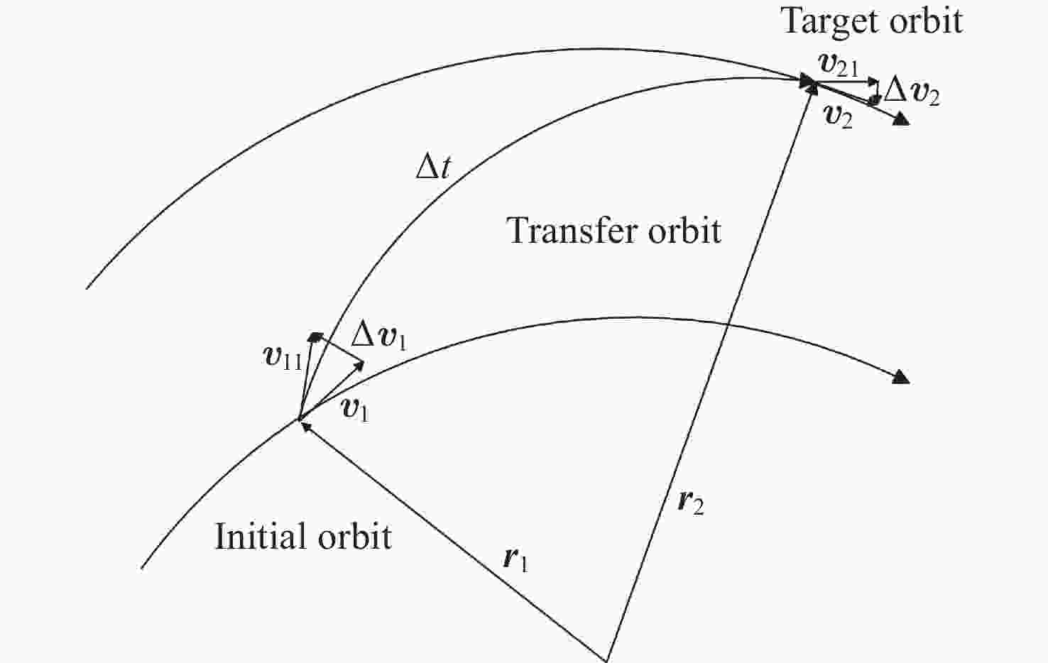 轨道根数 目标卫星 非合作目标卫星 Lambert转移轨道 半长轴a/km 12000 7000 9490.01 偏心率e 0 0 0.2646 轨道倾角i/(°) 10 10 10 升交点赤经Ω/(°) 0 0 2.94093 近地点幅角ω/(°) 235 235 65.2729 平近点角M/(°) 0 0 2.3429 表 2 探测意图目标卫星以及非合作目标卫星轨道根数