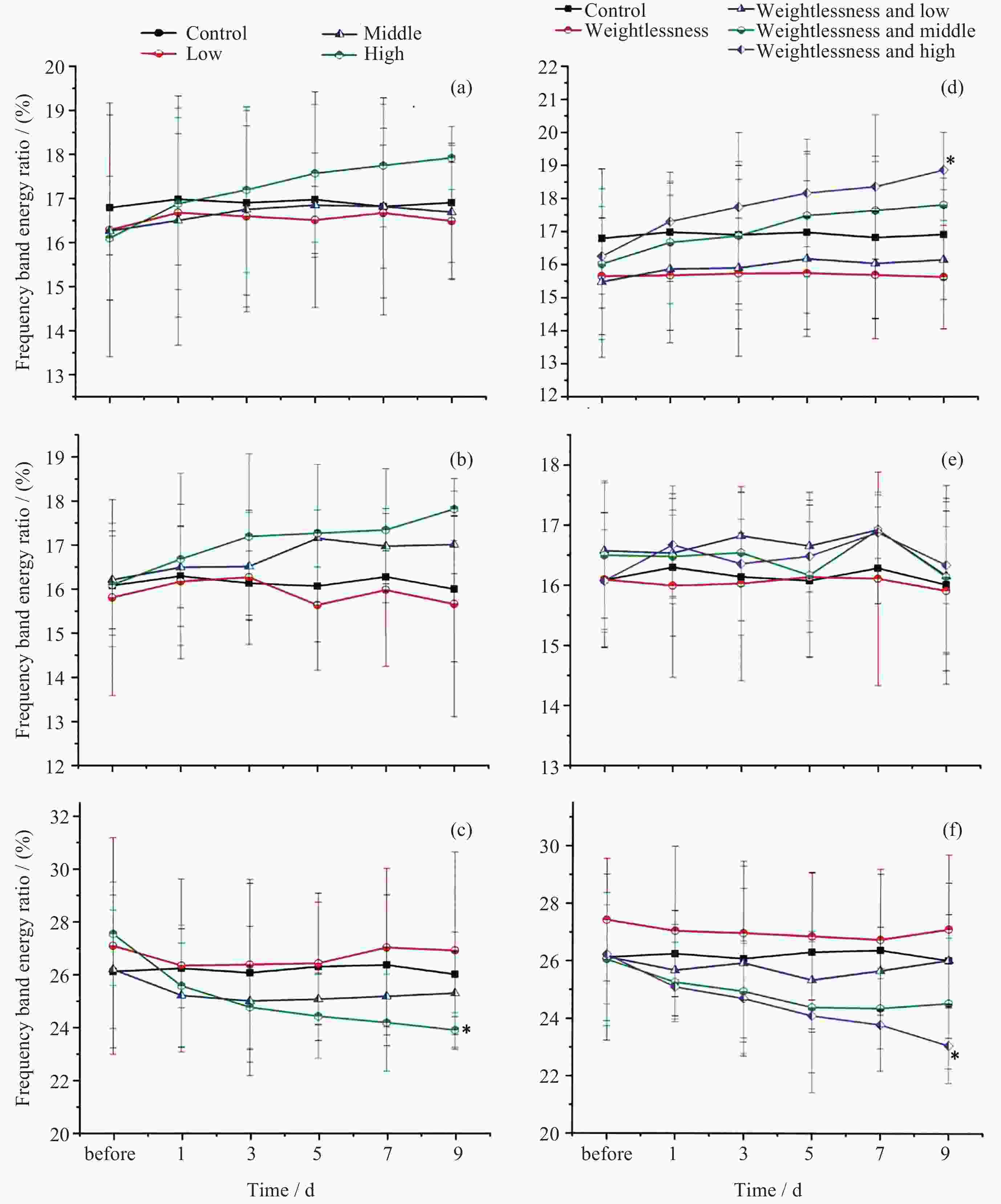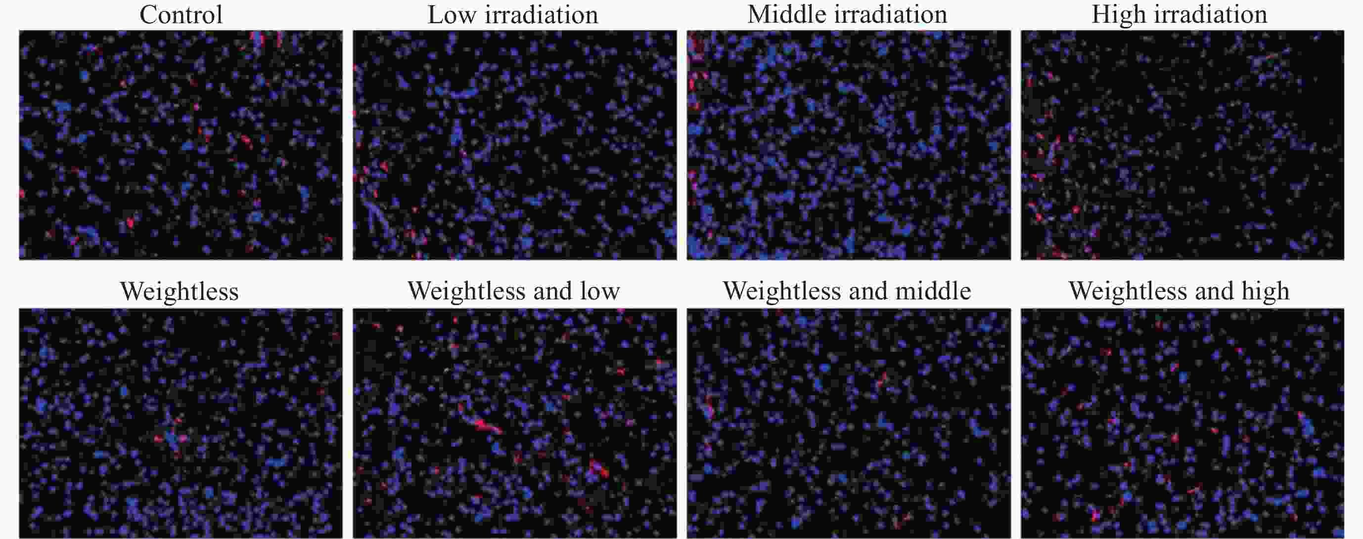 摘要: 通过生物电信号评估辐射与失重对脑的影响, 并揭示其影响规律与损伤机制, 为空间环境风险评估与防护技术研究提供参考. 以SD大鼠为对象, 设立不同实验组. 采集并分析大鼠脑电信号频谱变化, 利用神经网络模型识别脑电信号异常. 同时检测大鼠脑部特定区域的蛋白质表达量变化, 以探讨损伤机制. 辐射组与失重辐射复合组大鼠脑电信号出现慢波化, 复合作用影响显著, 神经网络模型能有效识别异常信号. 辐射与失重导致大鼠脑部髓鞘受损, 相关蛋白表达量出现变化, 提示胶质细胞激活. 辐射与失重对大鼠脑电信号有明显影响, 复合作用效果更为显著, 这可能与髓鞘受损及胶质细胞激活有关. 本研究为空间环境下的风险评估与防护技术提供了重要参考.Abstract: This article aims to assess the impact of radiation and weightlessness on the brain, specifically through the analysis of bioelectrical signals. Our goal is to elucidate the patterns and mechanisms underlying the effects of radiation, weightlessness, and their combined influence on Electroencephalogram (EEG) signals. This understanding will serve as a crucial reference for risk assessment and protective technology research in space environments. A comprehensive study was conducted utilizing SD rats as the experimental subjects. The eight different experimental groups were established to analyze EEG signals and automatically detect abnormal brain signals caused by radiation or weightlessness exposure.To delve deeper into the underlying biological mechanisms, the expression levels of Myelin Basic Protein (MBP), Glial Fibrillary Acidic Protein (GFAP), and ionized calcium-binding adapter molecule 1 (IBA1) were examined in specific brain regions, such as the frontal lobe, temporal lobe, and hippocampus. The study found that rats exposed to radiation alone or in combination with weightlessness showed a marked slow-wave EEG pattern, with the combined effect being more significant, indicating an enhanced effect. The neural network model accurately distinguished normal from abnormal EEG signals. The decrease of MBP and increase of GFAP and IBA1 were observed in the combined radiation-weightlessness groups, suggesting myelin damage and activation of astrocytes and microglias. The study reveals the effects of radiation and weightlessness on brain signals, showing that radiation alone induces slow-wave EEG patterns, and the combination with weightlessness exacerbates these patterns. The mechanism involves myelin sheath damage and glial cell activation. This understanding is crucial for assessing risks and developing protective measures in space, laying the groundwork for future research to improve astronaut safety and well-being.