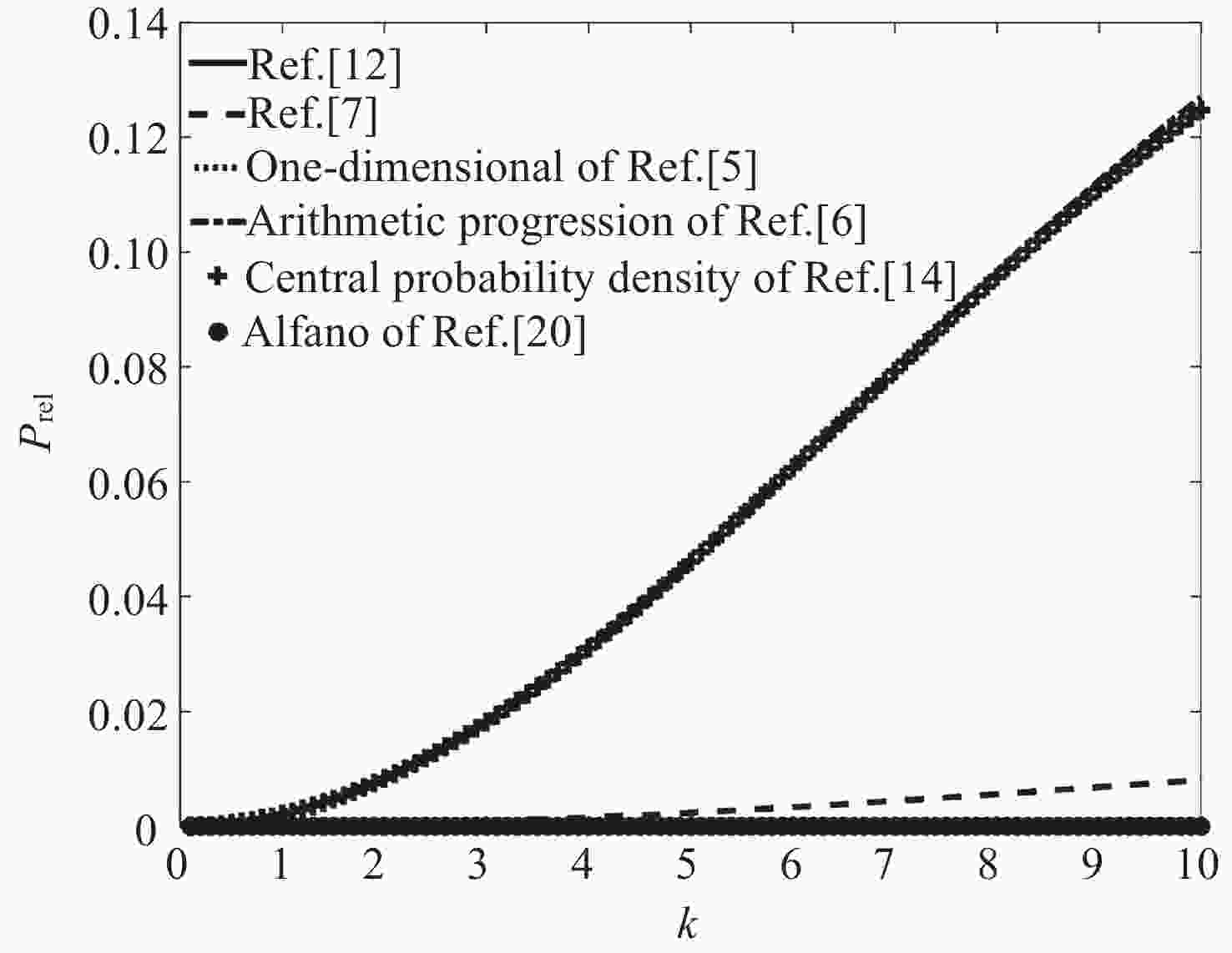 方法 碰撞概率 相对误差率 计算时间/s 二维面积积分法 $ 7.066\times {10}^{-4} $ - 0.1097 中心概率密度面积法 $ 7.051\times {10}^{-4} $ 0.0021 0.0064 一重积分法 $ 7.066\times {10}^{-4} $ $ 8.9\times {10}^{-14} $ 0.1259 级数法 $ 7.051\times {10}^{-4} $ 0.0021 0.0126 矩形域近似法 $ 7.067\times {10}^{-4} $ $ 1.00\times {10}^{-4} $ 0.0392 曲线积分法 $ 7.066\times {10}^{-4} $ $ 5.3\times {10}^{-15} $ 0.1097 辛普森公式积分法 $ 7.066\times {10}^{-4} $ $ 5.64\times {10}^{-6} $ 0.0074 表 3 蒙特卡罗方法计算结果