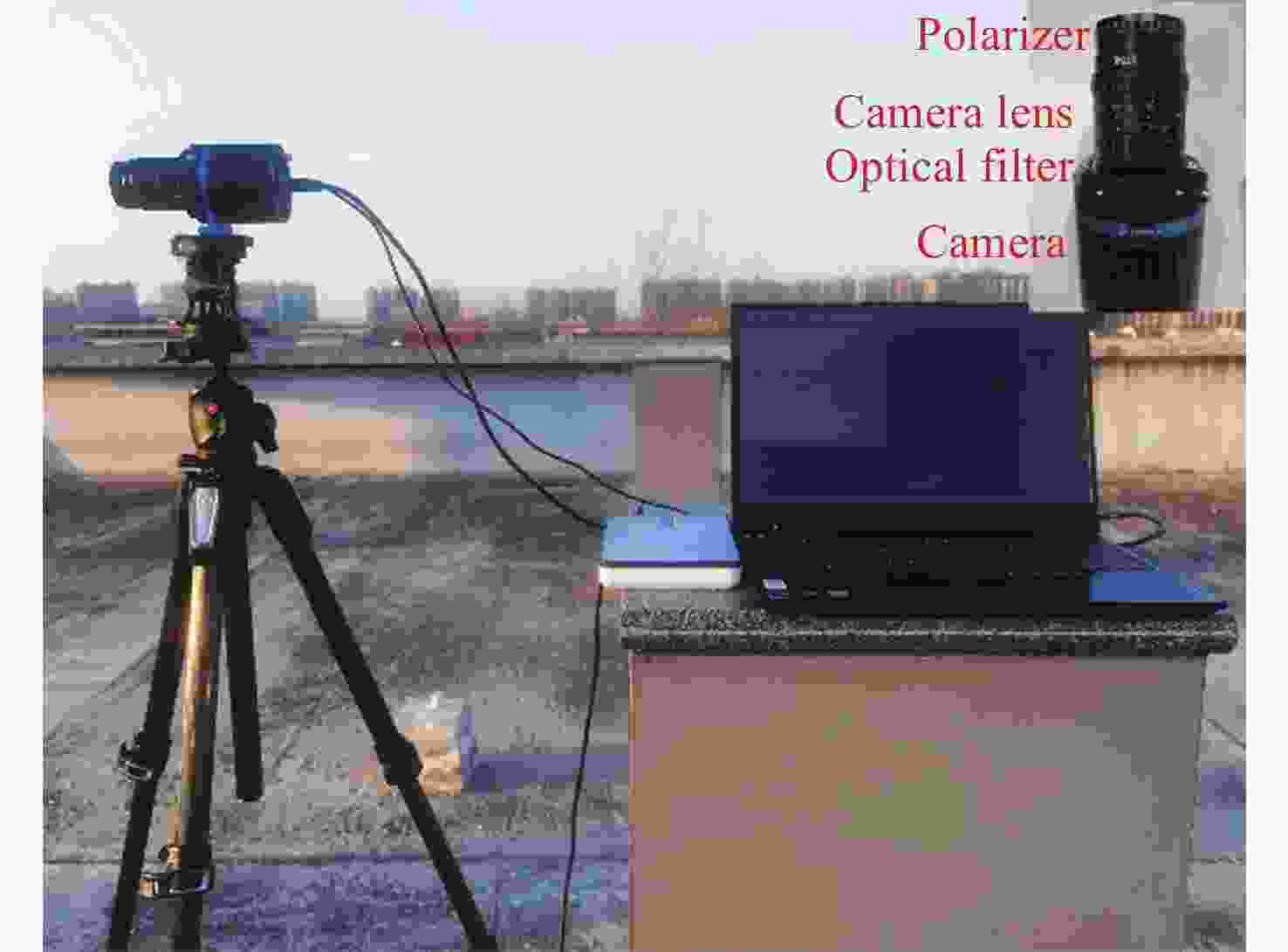 摘要: 大气偏振态研究是开展偏振探测、偏振遥感、偏振成像等应用的前提和基础. 相较于可见光波段, 近红外波段大气偏振态研究相对滞后. 已有研究多以理论分析为主, 缺乏实验验证. 为此, 本文采用短波红外图像传感器、红外镜头、红外偏振片、红外滤光片等搭建了近红外波段大气偏振测量系统, 在晴朗天气条件下对全天空900~1700 nm近红外波段大气偏振态进行了测量. 结果表明, 在近红外波段大气呈现稳定偏振模式, 其中大气偏振角分布稳定性明显优于大气偏振度分布; 大气偏振模式与瑞利散射表征模型符合较好, 全天区83%的点位模型偏振角误差小于10°, 79%点位模型偏振度误差小于0.1, 依托瑞利散射表征模型可有效预测各方位大气偏振态. 此外, 全天区大气整体偏振度不高, 均值为0.13, 正午时段仅为0.1, 与以往文献理论推导和假设存在差异, 偏振滤光技术是否适用于白昼目标探测应结合具体应用深入研究.Abstract: The study of atmospheric polarization is the prerequisite and foundation for polarization detection, polarization remote sensing, polarization imaging and other applications. Compared with the visible wavelength, the research on atmospheric polarization state in the near-infrared wavelength is relatively lagging behind. The existing literature is dominated by theoretical analysis and lacks experimental verification. In this paper, a short-wave infrared image sensor, an infrared lens, an infrared polarizer, an infrared filter, etc. are used to build a near-infrared atmospheric polarization measurement system, and the polarization state of the atmosphere in the near-infrared band of 900~1700 nm is measured in the whole sky under the sunny weather conditions. The results show that the atmosphere shows stable polarization patterns in the near-infrared band, in which the stability of the atmospheric polarization angle distribution is obviously better than that of the atmospheric polarization degree distribution; the atmospheric polarization patterns are in good agreement with the Rayleigh scattering characterization model, with 83% of the points in the whole sky area having a polarization angle error of less than 10°, and 79% of the points having a polarization degree error of less than 0.1, which makes it possible to predict the atmospheric polarization states in various directions effectively by relying on the Rayleigh scattering characterization model. In addition, the overall polarization of the atmosphere in the whole daytime area is not high, with an average value of 0.13, and only 0.1 at noon, which is different from the theoretical derivation and assumption of the previous literature, and the applicability of polarization filtering technology to the detection of daytime targets should be investigated in depth in the context of specific applications.