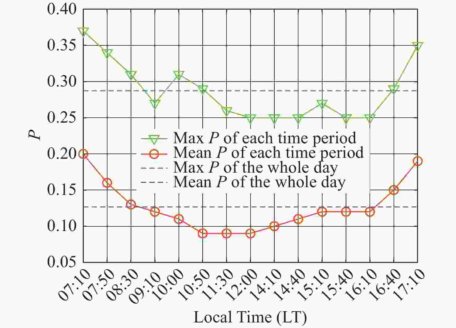 序号 高度角/(°) 方位角/(°) 0 30 60 90 120 150 180 210 240 270 300 330 1 20 5 –5 –20 –67 39 13 1 –8 –23 –65 43 17 40 9 –9 –33 –78 60 26 4 –13 –39 –79 65 31 60 11 –13 –34 –84 75 32 7 –16 –41 –83 78 41 80 11 –14 –44 –80 75 38 10 –16 –48 –80 75 45 2 20 14 6 –5 –30 39 6 –3 –11 –26 –60 63 29 40 17 1 –21 –79 65 24 2 –14 –39 –73 75 43 60 18 –6 –31 –82 80 32 10 –15 –42 –82 86 52 80 24 –13 –30 –82 88 56 19 –14 –36 –90 86 52 3 20 25 16 9 0 0 –7 –13 –16 –30 –58 82 47 40 30 14 –4 –11 76 22 –2 –16 –37 –67 90 57 60 30 8 –18 –51 87 33 16 –15 –39 –70 90 61 80 31 0 –28 –69 89 44 24 –9 –29 –70 89 61 4 20 36 24 18 0 83 –20 –19 –19 –32 –56 –89 59 40 39 23 6 –25 90 16 –4 –21 –36 –63 –88 67 60 37 22 –10 –25 –83 9 19 –18 –31 –65 –90 73 80 33 18 –19 –51 –85 65 30 0 –27 –57 88 78 5 20 49 36 30 31 90 12 –29 –29 –38 –46 –75 84 40 54 31 22 14 0 11 –45 –23 –30 –55 –86 87 60 56 32 11 –17 –71 82 48 –14 –28 –50 –83 83 80 29 24 –9 –57 –85 88 35 15 –23 –22 –78 89 6 20 63 46 37 37 81 –78 –36 –29 –38 –46 –72 85 40 72 46 32 25 12 –39 –45 –24 –30 –52 –86 87 60 73 32 23 –55 –29 0 25 –3 –25 –29 –78 90 80 65 36 11 –20 –53 –89 34 21 –9 –29 –65 –89 7 20 78 56 45 41 48 25 –56 –34 –35 –50 –66 –86 40 80 56 33 30 –61 0 –31 –25 –30 –40 –71 –87 7 60 84 51 33 13 –13 0 –14 5 –20 –28 –61 –87 80 86 41 20 –19 4 –81 65 33 3 –27 –47 –85 8 20 84 65 51 43 47 74 –65 –43 –38 –47 –59 –77 40 90 70 46 36 32 90 0 –28 –29 –34 –59 –87 60 89 66 34 23 25 –31 90 11 –13 –30 –41 –84 80 89 60 34 7 –23 –53 84 45 19 –13 –33 –79 9 20 –68 –90 69 52 41 39 45 25 –25 –30 –33 –49 40 –72 –88 75 51 28 25 19 0 –27 –21 –31 –43 60 –63 –87 81 33 28 7 –25 –6 5 9 –23 –27 80 –25 –87 90 27 28 –25 –45 –79 65 32 0 –28 10 20 –58 –82 73 53 40 35 37 65 –25 –33 –28 –40 40 –60 –84 80 55 33 24 74 0 0 –13 –26 –36 60 –57 –87 81 48 31 11 –20 –15 7 20 –21 –26 80 –28 –89 90 25 28 –25 –25 –89 87 37 13 –21 11 20 –51 –76 77 53 39 31 31 34 23 –30 –26 –32 40 –52 –75 90 90 55 28 23 –16 0 –13 –18 –28 60 –47 –78 90 57 31 15 –16 20 81 28 –3 –25 80 –23 –89 89 37 27 –28 –27 –88 74 22 31 –23 12 20 –43 –65 83 55 37 28 24 20 –58 –25 –23 –25 40 –45 –74 90 59 38 23 5 57 90 11 –14 –23 60 –41 –75 90 64 31 22 –22 –65 83 37 14 –19 80 –27 –76 88 60 31 3 –27 –65 90 17 26 –18 13 20 –29 –54 –88 57 34 23 19 0 0 –14 –16 –16 40 –32 –58 –89 64 38 20 2 –25 –16 30 3 –15 60 –32 –61 –90 71 39 20 –27 –36 –84 29 29 –9 80 –26 –57 –90 73 30 9 –22 –53 –88 65 31 2 14 20 –21 –45 27 58 31 19 15 18 0 0 –7 –10 40 –23 –51 –86 67 38 17 0 –23 –88 25 19 –7 60 –24 –53 –90 80 40 16 –27 –24 –83 65 28 0 80 –22 –52 –90 77 37 13 –24 –36 –89 80 30 8 15 20 –13 –32 –69 60 27 14 6 0 0 0 3 –5 40 –16 –43 –78 69 36 14 –2 –25 –61 7 22 0 60 –17 –46 –87 80 42 13 –19 –25 –89 79 30 8 80 –15 –45 –88 85 45 14 –16 –36 –85 56 36 12 表 4 全天各时段全天区大气偏振度实测值