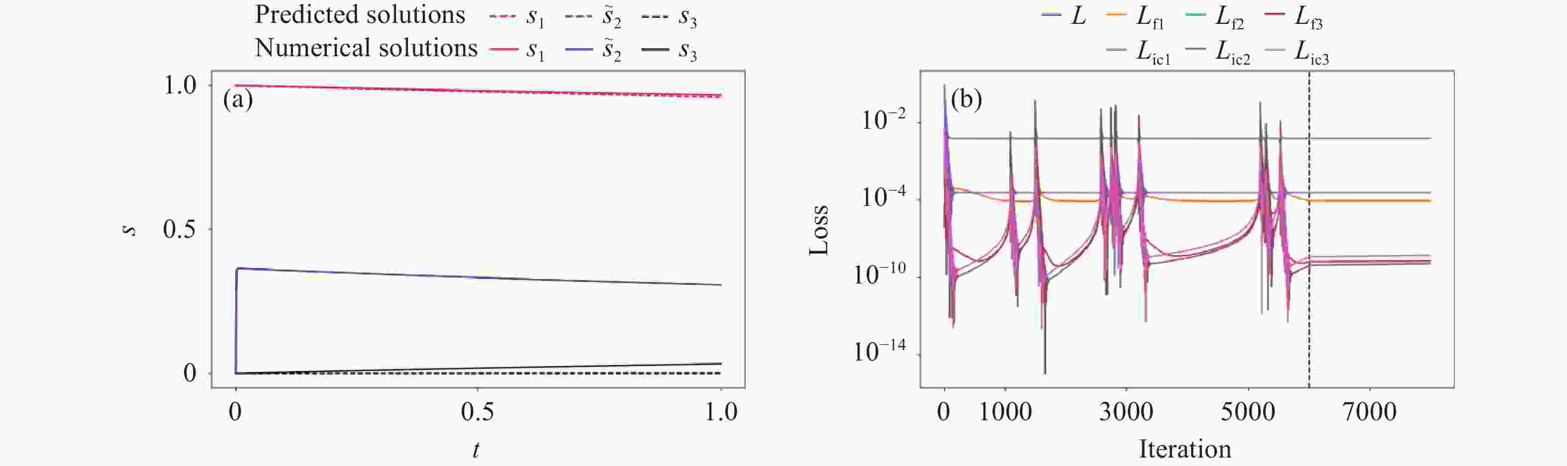 守恒形式 Adam L-BFGS 时间/min $ {s}_{1} $相对误差/(%) $ {s}_{2} $相对误差/(%) $ {s}_{3} $相对误差/(%) $ E = 1 $ 35000 5000 13.58 0.40 10.72 0.46 $ {E^2} = 1 $ 35000 5000 12.26 85.38 99.99 99.71 $ \sqrt E = 1 $ 35000 5000 13.59 0.52 99.99 0.64 -