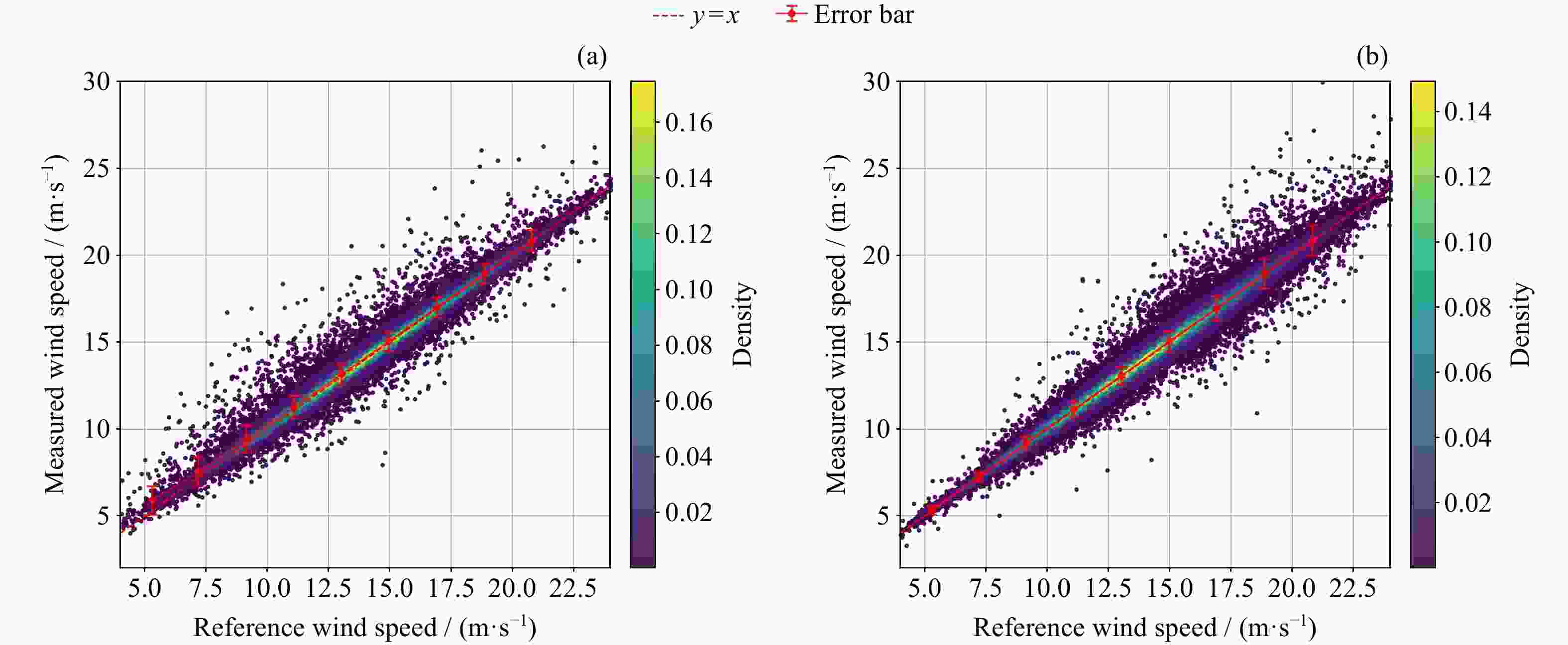 摘要: 高风速风场, 特别是热带气旋风场的散射计观测长期备受关注. 本研究针对我国业务化运行的两种散射计——旋转扇形波束体制散射计和旋转笔形波束体制散射计, 通过系统仿真方法分析其在不同风速条件下的后向散射系数测量精度和风场反演性能, 并评估其对热带气旋的观测能力. 参考现有在轨运行散射计参数得到的实验结果表明, 旋转扇形波束体制散射计各观测视数能够取得更多独立观测样本数, 在20 m·s–1以上高风速风场的后向散射系数测量和风场反演仿真中性能表现更佳. 而旋转笔形波束体制散射计各观测视数拥有更大的归一化信噪比, 在低于20 m·s–1的低风速和中等风速风场观测仿真中性能表现更佳. 研究揭示了两种散射计体制在不同风速区间的性能特点, 对高风速风场反演及热带气旋观测有重要参考意义, 同时, 结论也为后续不同体制散射计设计和信号处理算法改进研究奠定了基础.Abstract: The observation of high speed wind fields, especially tropical cyclone wind fields, has long been an important research subject in scatterometer remote sensing. In this study, we analyzed the backscattering coefficient measurement accuracies and wind retrieval performances of the two scatterometer systems that have been operational in China: the rotating fan-beam system and the rotating pencil-beam system by simulation methods. Simulations at varying wind speed wind fields and tropical cyclone wind fields observations are conducted for both systems. Simulation results obtained with reference to the parameters of existing operational scatterometers show that the rotating fan-beam system demonstrates superior sampling capacity compared to the rotating pencil-beam system, with the vast majority of its observation views gaining a greater number of independent observation samples than 1000, whereas the rotating pencil-beam system has mainly 100~400 independent observation samples for each observation view only. This sampling advantage enables the rotating fan-beam system to achieve better performance in backscattering coefficient measurement and wind field retrieval in the simulations for wind fields with high wind speeds above 20 m·s–1. At the same time, the normalized SNR of each observation view is higher for the rotating pencil-beam system, which is about 300~600 per observation view, compared to 6~14 for the rotating fan-beam system. This SNR superiority enables the rotating pencil-beam system to maintain a more precise observation for wind fields with low and medium wind speeds below 20 m·s–1 in the simulation. This study reveals the performance characteristics of backscattering coefficient measurement and wind field retrieval of different scatterometer systems under various wind speed conditions, which is of reference significance for high speed wind fields retrieval and tropical cyclone wind fields observation. Meanwhile, the conclusions of this study also lay a foundation for subsequent research on the improvement of scatterometer wind field observation accuracy and optimization of signal processing algorithms for different scatterometer systems.