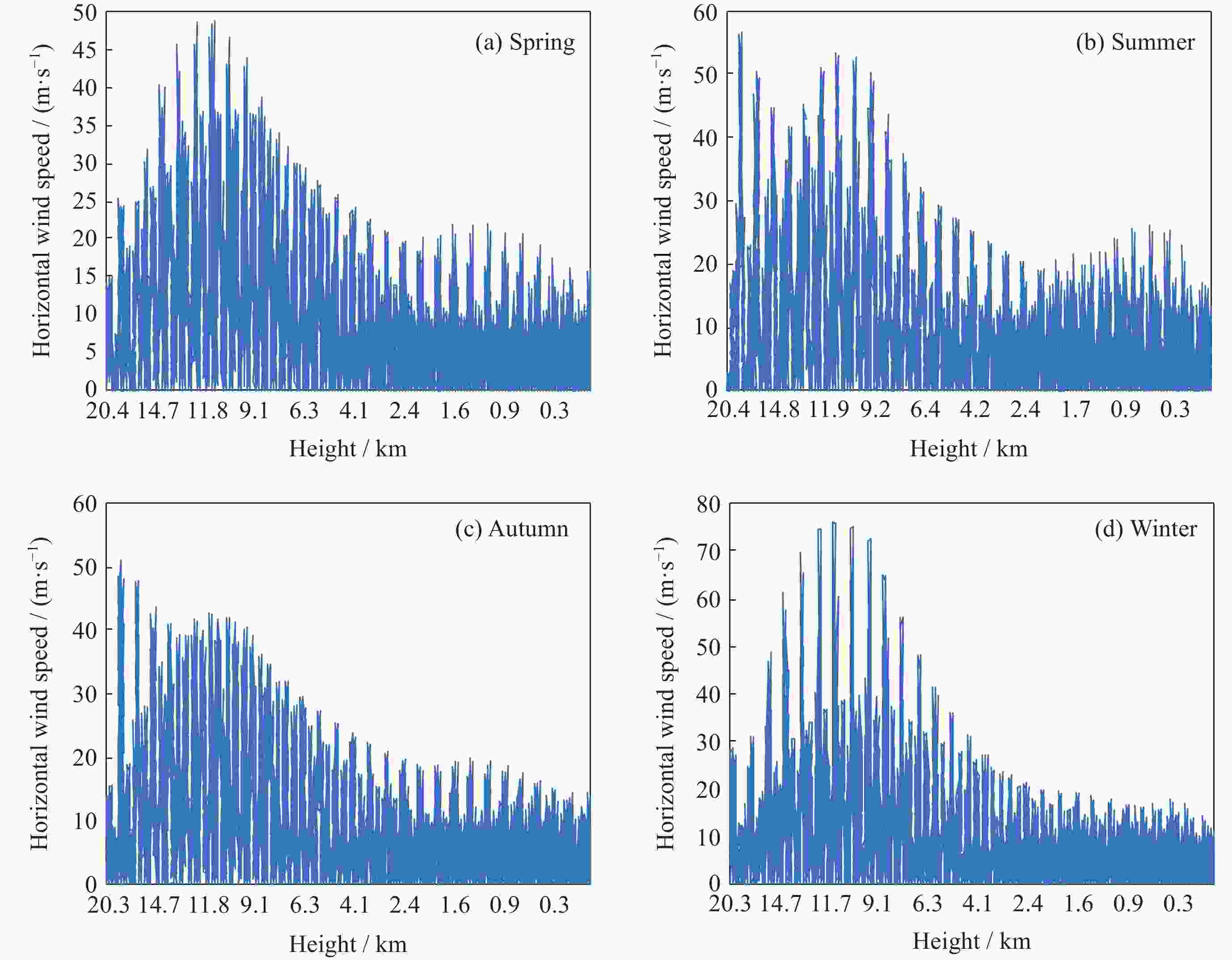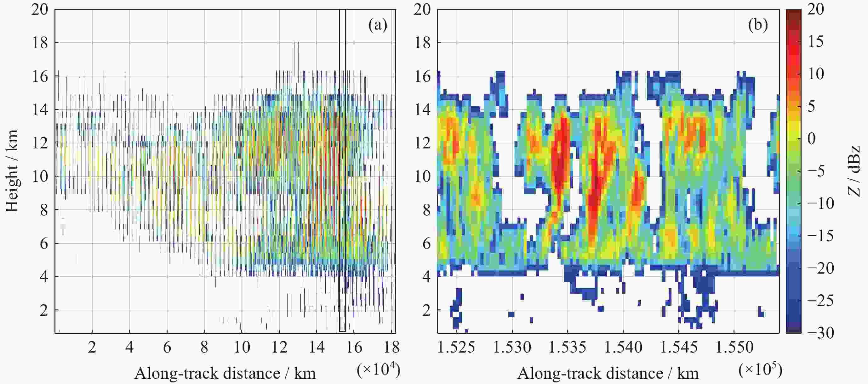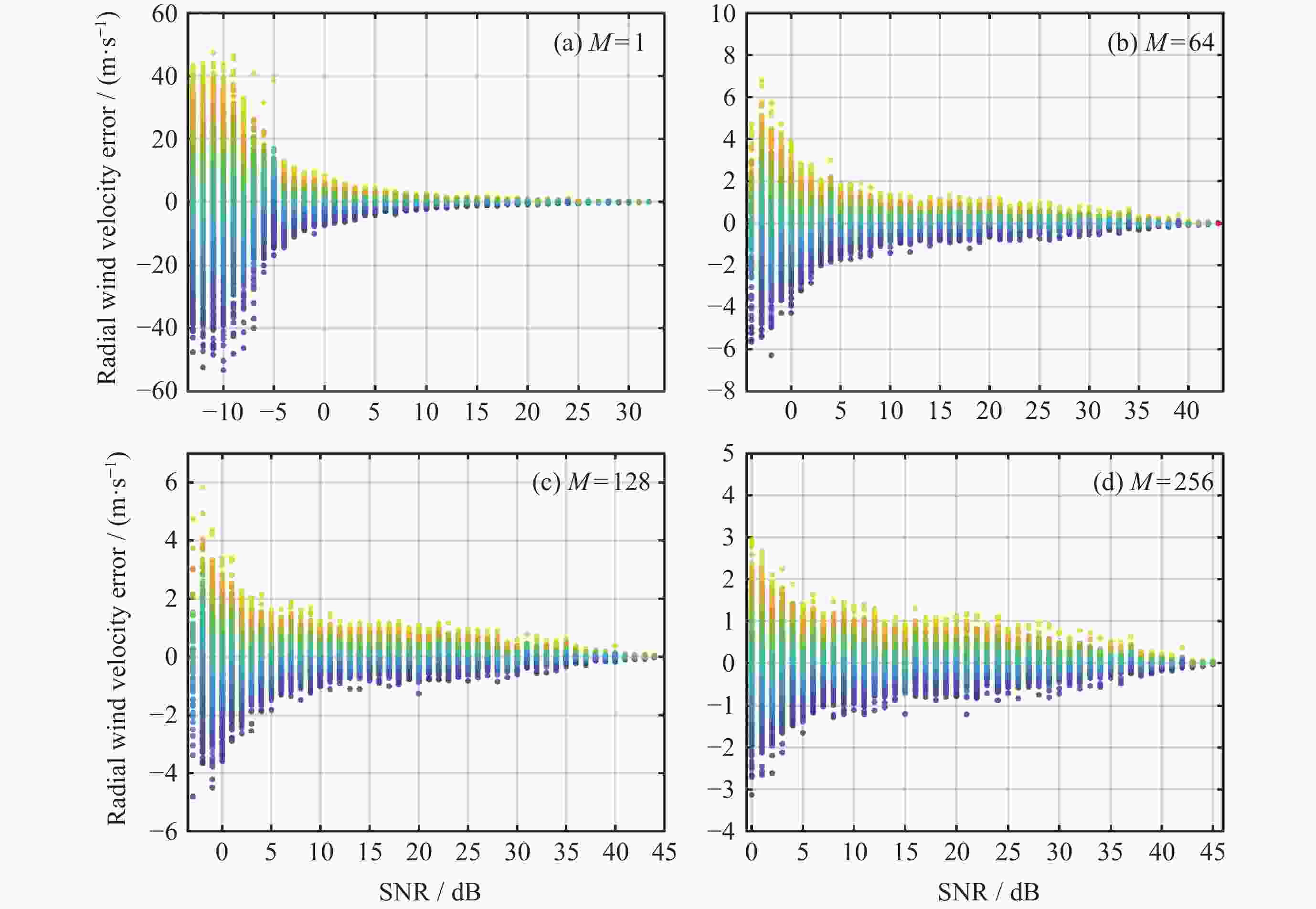 摘要: 全球三维大气风场探测对提升数值天气预报精度、增强气象灾害预警能力及保障航空航天安全具有关键作用. 本文建立了一套星载W波段多普勒雷达云内大气风场探测信号仿真系统, 通过输入实际场景的大气廓线数据, 仿真雷达回波信号, 进而利用回波信号估计径向风速, 并分析了信噪比和脉冲累积数对径向风速估计精度的影响. 结果表明, 对于星载W波段多普勒雷达, 当极化脉冲间隔不大于20 μs时, 极化分集脉冲对技术可实现0~40 m·s–1的风速探测范围, 有效获取云内高风速产品; 径向风速估计精度随脉冲累积数的增加和信噪比的增大而提升; 在本文雷达系统指标条件下, 当信噪比为0 dB, 脉冲累积数为64时, 径向风速估计精度为1.34 m·s–1, 能够满足数值天气预报2 m·s–1的测风精度要求.Abstract: The detection of the global three-dimensional atmospheric wind field plays a crucial role in improving the accuracy of numerical weather prediction, enhancing the ability of meteorological disaster early warning, and ensuring the safety of aerospace activities. At present, the main methods for detecting the atmospheric wind field include ground-based wind profile radars, spaceborne Doppler lidars, and millimeter-wave cloud radars, etc. Ground-based wind profile radars are difficult to deploy in oceanic and remote terrestrial areas, making it impossible to achieve global networked observations. Spaceborne Doppler Lidars can accurately detect the atmospheric wind field in clear-sky regions, but they are unable to obtain data on the wind field within clouds. Compared with lasers, millimeter waves have better penetration capabilities and possess unique advantages in the detection of the wind field within clouds. However, existing spaceborne millimeter-wave cloud radars cannot provide information on the horizontal wind field. Spaceborne millimeter-wave cloud radars with a conical scanning system can achieve the detection of the three-dimensional atmospheric wind field within clouds. In this paper, a signal simulation system for the atmospheric wind field detection within clouds by a spaceborne W-band Doppler radar was established, which provided a theoretical basis and technical reference for in-cloud wind field detection. The required elements of the signal simulation system include atmospheric profile data, reflectivity factor, attenuation coefficient, radar system parameters, spaceborne observation geometry, echo signal amplitude, echo signal frequency, echo signal phase, echo signals, and radial velocity. The system processes actual cloud profile data and simulates radar echo signals to estimate the radial wind speed. The effects of Signal-to-Noise Ratio (SNR) and pulse-pair cumulative number on the estimation accuracy of radial wind speed were systematically analyzed. The results show that for a spaceborne W-band Doppler radar, when the polarization pulse interval is not greater than 20 μs, the polarization diversity pulse-pair technique can achieve a wind speed detection range of 0 to 40 m·s–1, effectively obtaining high wind speed products within clouds. The estimation accuracy of radial wind velocity is positively correlated with the increase in SNR and the number of pulse-pair accumulations. Under the index conditions of the radar system described in this paper, when the SNR is 0 dB and the number of pulse-pair accumulations is 64, the estimation accuracy of the radial wind speed is 1.34 m·s–1, which can meet the wind measurement accuracy requirement of 2 m·s–1 for numerical weather prediction.