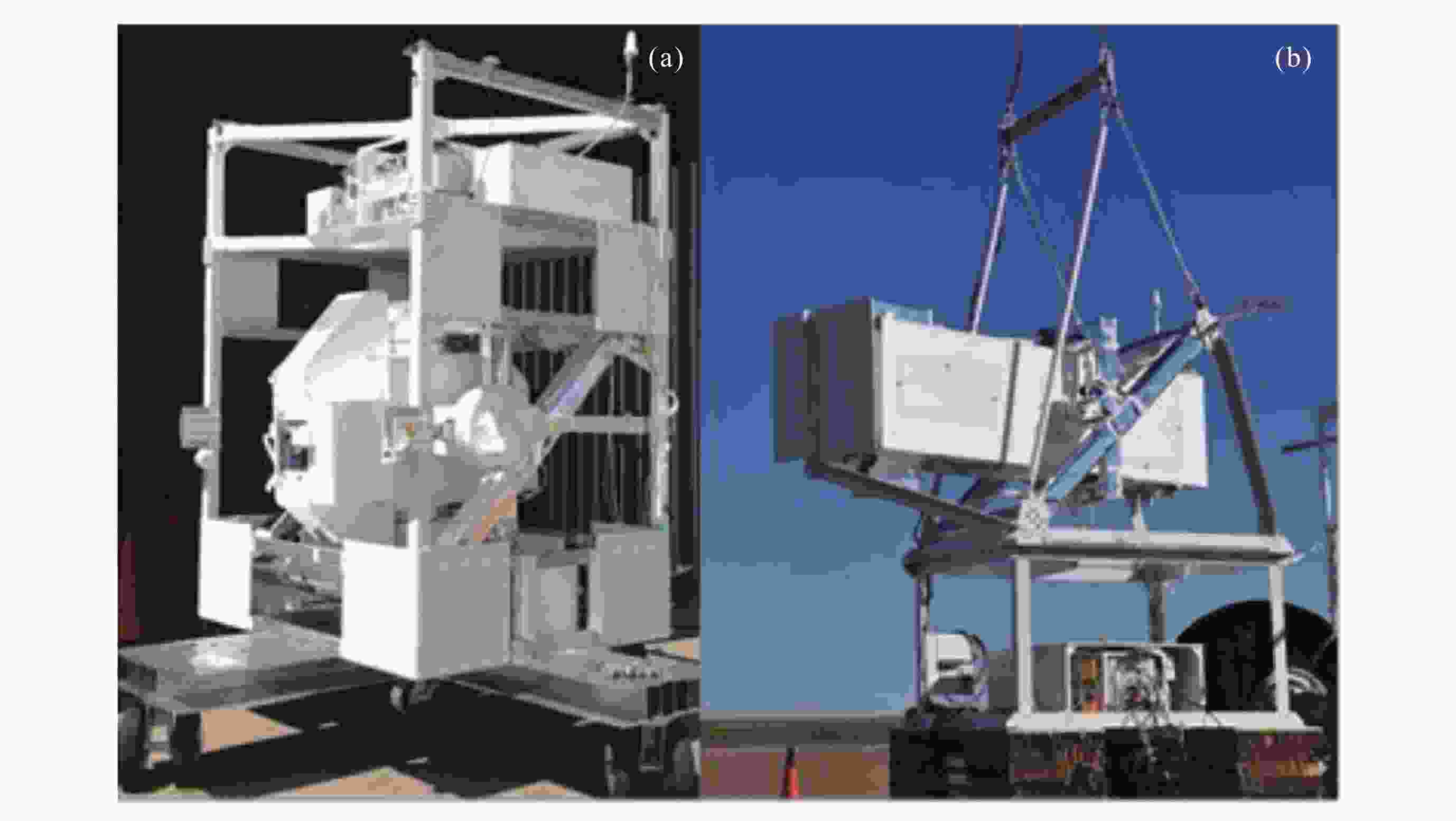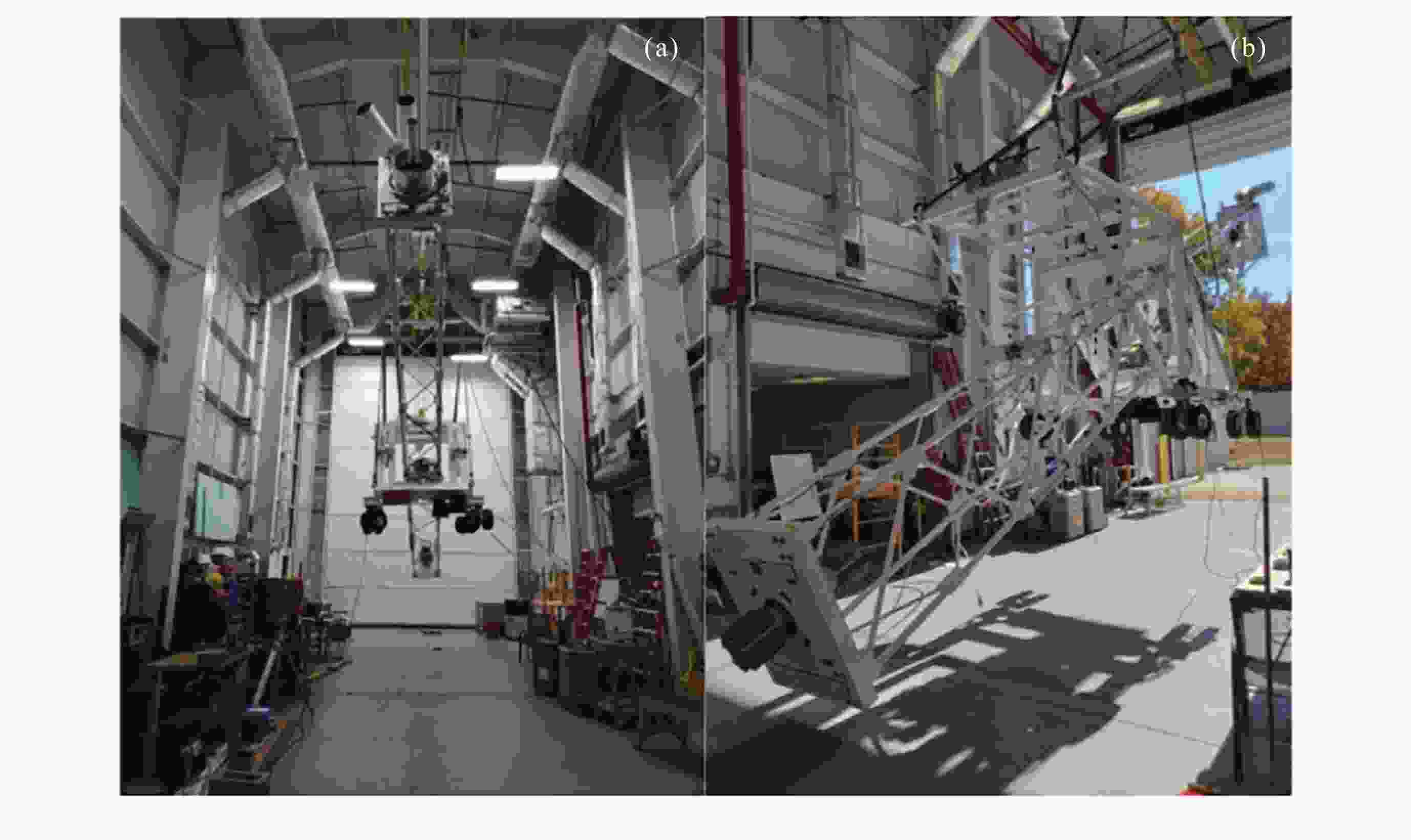 图  22  Wallops飞行中心集成测试期间的 XL-Calibur. (a)夜间星跟踪器测试期间的前视图, (b) 白天太阳传感器测试期间的侧视图