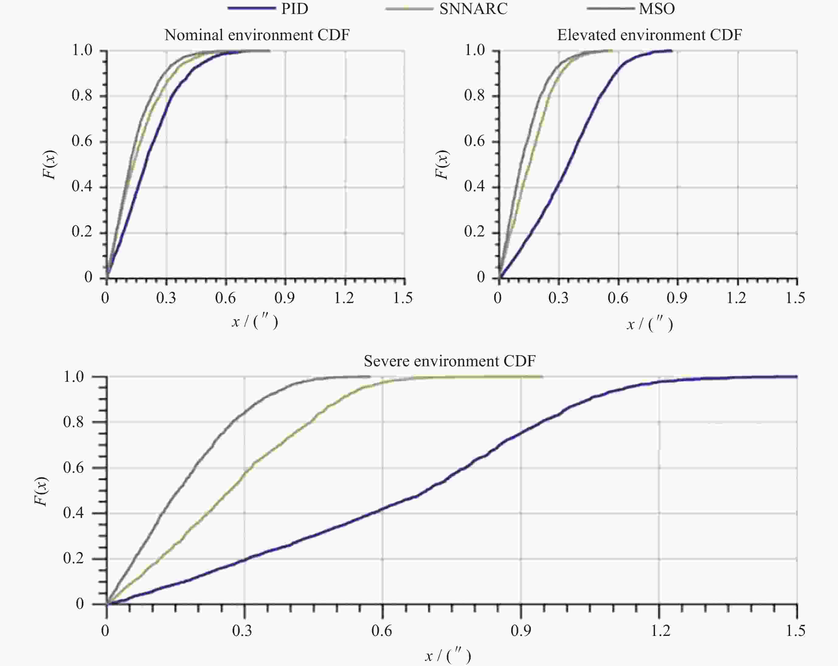 图  33  经验累积分布函数(MSO和SNNARC的指向性能变化较小, 而PID控制系统性能下降较快)