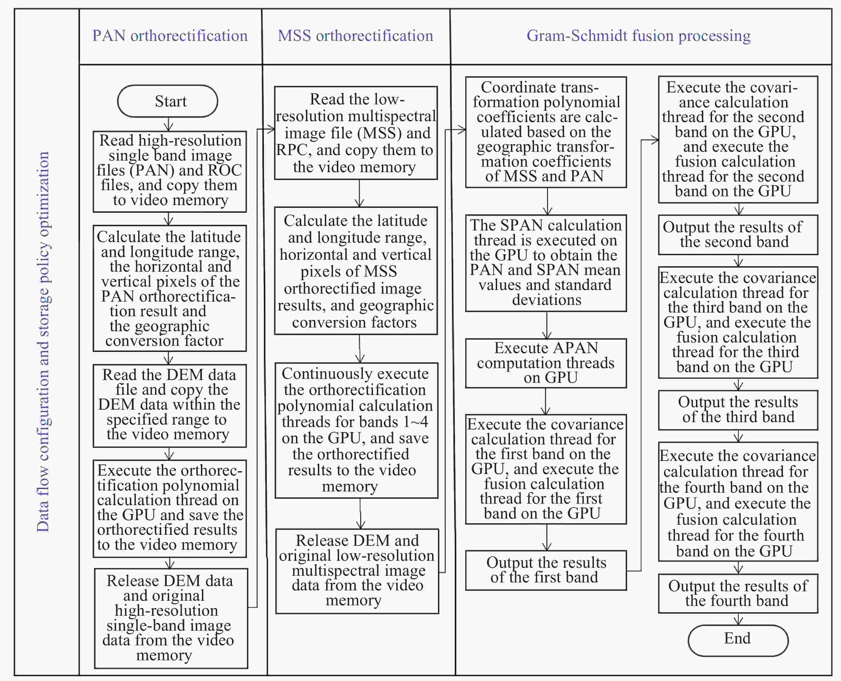 摘要: 系统探讨了基于国产云平台调度下自主可控CPU和GPU协同处理的光学卫星遥感影像正射融合方法执行效率问题, 通过数据流配置、中间数据存储访问优化等手段进一步提高了该方法执行效率. 在云平台调度下, 使用飞腾S2500和英伟达A100对高分二号卫星多光谱影像进行正射融合的试验, 结果表明, 该方法可很大程度提高光学卫星遥感影像正射融合效率, 与传统X86架构CPU与GPU协同的正射融合算法相比, 加速比为14.3倍以上, 数据处理时间压缩至8.4 s内, 其中GPU运算耗时仅1 s, 可满足并优化大数据量的光学卫星遥感影像快速正射融合的要求.