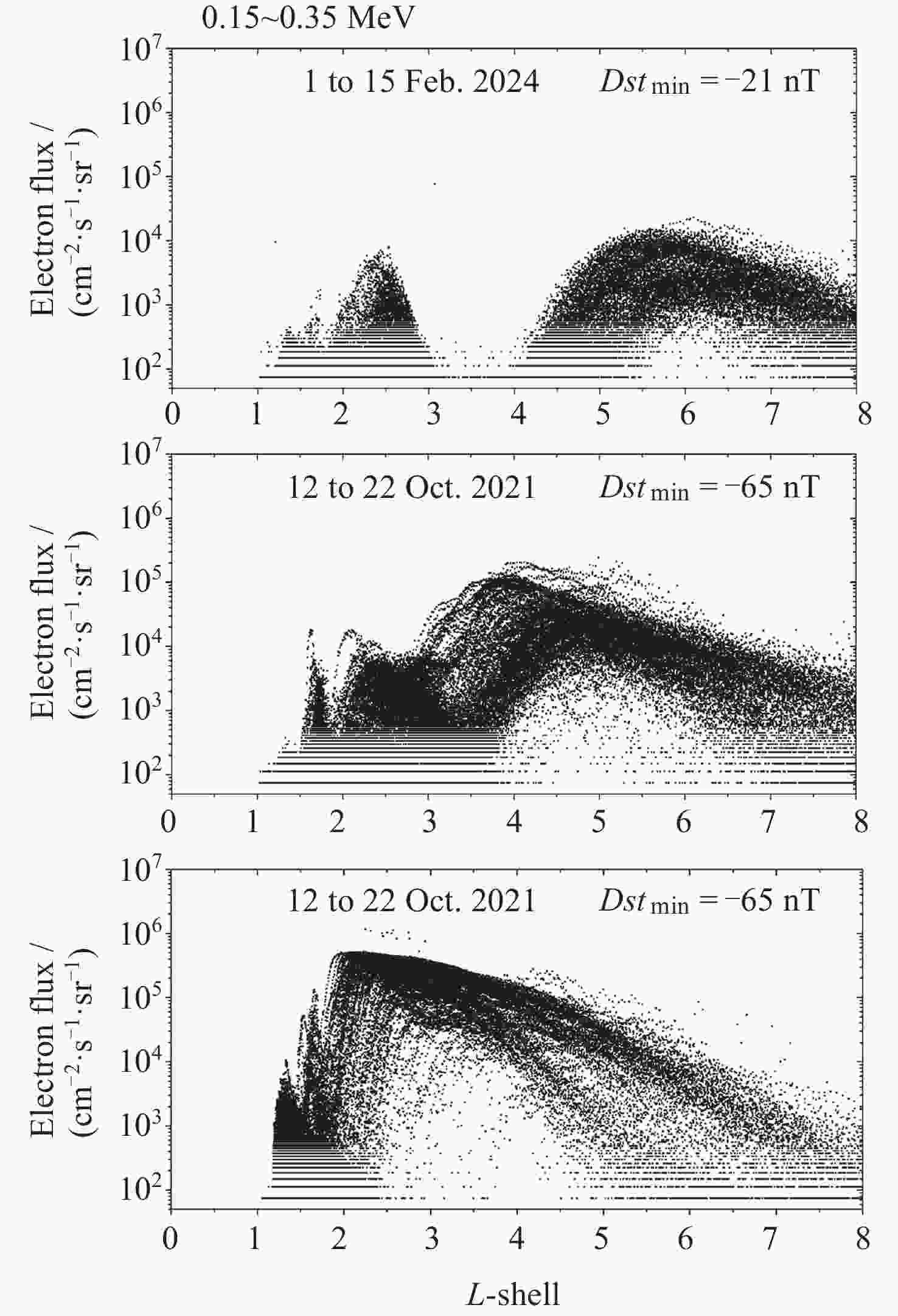 [1] BAKER D N, ERICKSON P J, FENNELL J F, et al. Space weather effects in the earth’s radiation belts[J]. Space Science Reviews, 2018, 214(1): 17 doi: 10.1007/s11214-017-0452-7 [2] DMITRIEV A V. On the radiation belt location during the 23rd and 24th solar cycles[J]. Annales Geophysicae, 2019, 37(4): 719-732 doi: 10.5194/angeo-37-719-2019 [3] HEYNDERICKX D. Radiation belt modelling in the framework of space weather effects and forecasting[J]. Journal of Atmospheric and Solar-Terrestrial Physics, 2002, 64(16): 1687-1700 doi: 10.1016/S1364-6826(02)00119-0 [4] ZHANG P, HU X Q, LU Q F, et al. FY-3E: the first operational meteorological satellite mission in an early morning orbit[J]. Advances in Atmospheric Sciences, 2022, 39(1): 1-8 doi: 10.1007/s00376-021-1304-7 [5] SHEN G H, ZHANG X X, WANG J H, et al. Development and calibration of a three-directional high-energy particle detector for FY-3E satellite[J]. Aerospace, 2023, 10(2): 173 doi: 10.3390/aerospace10020173 [6] HOU D H, ZHANG X X, WANG J H, et al. Calibration of the FY-3E particle sensors: high-energy particle detector (HEPD)[J]. Journal of Instrumentation, 2023, 18(7): P07050 doi: 10.1088/1748-0221/18/07/P07050 [7] VLASOVA N A, KALEGAEV V V, NAZARKOV I S. Dynamics of relativistic electron fluxes of the outer radiation belt during geomagnetic disturbances of different intensity[J]. Geomagnetism and Aeronomy, 2021, 61(3): 331-340 doi: 10.1134/S0016793221030178 [8] PIERRARD V, BOTEK E, RIPOLL J F, et al. Electron dropout events and flux enhancements associated with geomagnetic storms observed by PROBA-V/Energetic Particle Telescope from 2013 to 2019[J]. Journal of Geophysical Research: Space Physics, 2020, 125(12): e2020JA028487 doi: 10.1029/2020JA028487 [9] CHEN H W T, KALEGAEV V V, PANASYUK M I, et al. Long‐term dropout of relativistic electrons in the outer radiation belt during two sequential geomagnetic storms[J]. Journal of Geophysical Research: Space Physics, 2020, 125(10): e2020JA028098 doi: 10.1029/2020JA028098 [10] ZHENG Y H, LUI A T Y, LI X L, et al. Characteristics of 2-6 MeV electrons in the slot region and inner radiation belt[J]. Journal of Geophysical Research: Space Physics, 2006, 111(A10): A10204 doi: 10.1029/2006JA011748 [11] WANG Chunqin, ZHANG Xianguo, SHEN Guohong, et al. Dynamic results of electron flux in radiation belt from 2011 to 2015 based on FY-3B satellite observation[J]. Chinese Journal of Geophysics, 2021, 64(6): 1831-1841 (王春琴, 张贤国, 沈国红, 等. 2011-2015年辐射带电子动态FY-3B卫星实测结果[J]. 地球物理学报, 2021, 64(6): 1831-1841 doi: 10.6038/cjg2021O0341WANG Chunqin, ZHANG Xianguo, SHEN Guohong, et al. Dynamic results of electron flux in radiation belt from 2011 to 2015 based on FY-3B satellite observation[J]. Chinese Journal of Geophysics, 2021, 64(6): 1831-1841 doi: 10.6038/cjg2021O0341 [12] WANG C Q, CHANG Z, ZHANG X X, et al. Proton belt variations traced back to Fengyun-1C satellite observations[J]. Earth and Planetary Physics, 2020, 4(6): 611-618 doi: 10.26464/epp2020069 [13] LOOPER M D, BLAKE J B, MEWALDT R A. Response of the inner radiation belt to the violent Sun-Earth connection events of October-November 2003[J]. Geophysical Research Letters, 2005, 32(3): L03S06 doi: 10.1029/2004GL021502 [14] LORENTZEN K R, MAZUR J E, LOOPER M D, et al. Multisatellite observations of MeV ion injections during storms[J]. Journal of Geophysical Research: Space Physics, 2002, 107(A9): 1231 [15] YUAN C J, ZONG Q G. Dynamic variations of the outer radiation belt during magnetic storms for 1.5-6.0 MeV electrons[J]. Science China Technological Sciences, 2011, 54(2): 431-440 doi: 10.1007/s11431-010-4269-9 [16] GOYAL R, ZHAO H, CALIF S, et al. Role of subauroral polarization streams in deep injections of energetic electrons into the inner magnetosphere[J]. Geophysical Research Letters, 2024, 51(11): e2024GL108863 doi: 10.1029/2024GL108863 [17] SUMMERS D, THORNE R M, XIAO F L. Relativistic theory of wave-particle resonant diffusion with application to electron acceleration in the magnetosphere[J]. Journal of Geophysical Research: Space Physics, 1998, 103(A9): 20487-20500 doi: 10.1029/98JA01740 [18] HORNE R B, THORNE R M. PotenTial waves for relativistic electron scattering and stochastic acceleration during magnetic storms[J]. Geophysical Research Letters, 1998, 25(15): 3011-3014 doi: 10.1029/98GL01002 [19] NI B B, HUA M, GU X D, et al. Artificial modification of Earth’s radiation belts by ground-based Very-Low-Frequency (VLF) transmitters[J]. Science China Earth Sciences, 2022, 65(3): 391-413 doi: 10.1007/s11430-021-9850-7 [20] SAUVAUD J A, WALT M, DELCOURT D, et al. Inner radiation belt particle acceleration and energy structuring by drift resonance with ULF waves during geomagnetic storms[J]. Journal of Geophysical Research: Space Physics, 2013, 118(4): 1723-1736 doi: 10.1002/jgra.50125 [21] LI X L, BARKER A B, BAKER D N, et al. Modeling the deep penetration of outer belt electrons during the ‘‘Halloween’’ magnetic storm in 2003[J]. Space Weather, 2009, 7(2): S02004 doi: 10.1029/2008SW000418 [22] SELESNICK R S, HUDSON M K, KRESS B T. Injection and loss of inner radiation belt protons during solar proton evenTs and magnetic storms[J]. Journal of Geophysical Research: Space Physics, 2010, 115(A8): A08211 doi: 10.1029/2010JA015247 [23] LI W, HUDSON M K. Earth’s Van Allen radiation belts: from discovery to the Van Allen Probes era[J]. Journal of Geophysical Research: Space Physics, 2019, 124(11): 8319-8351 doi: 10.1029/2018JA025940 [24] SMIRNOV A, SHPRITS Y, ALLISON H, et al. Storm-time evolution of the equatorial electron pitch angle distributions in earth’s outer radiation belt[J]. FronTiers in Astronomy and Space Sciences, 2022, 9: 836811 doi: 10.3389/fspas.2022.836811 -