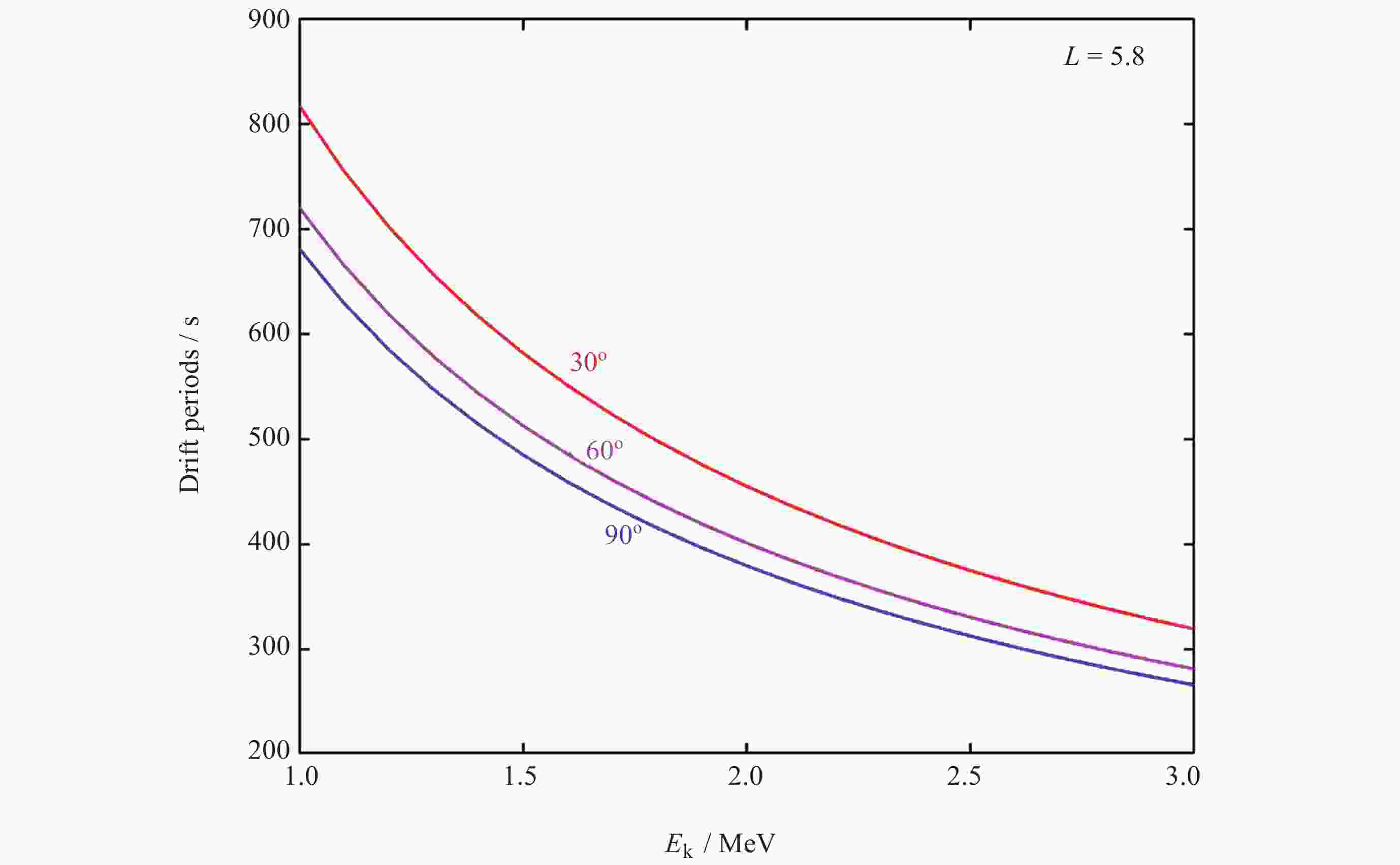 图  6  1~3 MeV电子在L=5.8处的漂移周期