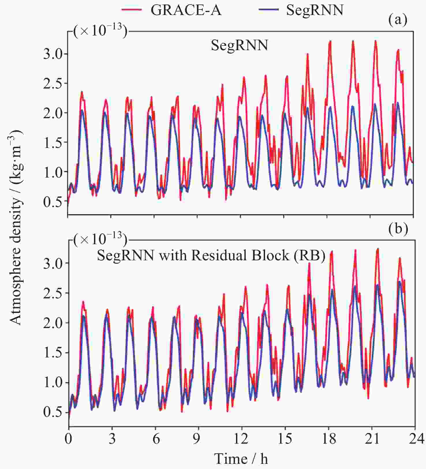Horizon Metric Model LSTM SegRNN without RB SegRNN with RB 1 h RMSE/ (kg·m–3) 4.6×10–14 2.6×10–14 2.7×10–14 RE/(%) 7.8 4.7 2.5 3 h RMSE/(kg·m–3) 4.9×10–14 3.0×10–14 2.9×10–14 RE/(%) 8.2 4.7 4.3 6 h RMSE/(kg·m–3) 7.7×10–14 3.3×10–14 3.1×10–14 RE/(%) 14.8 7.4 4.2 12 h RMSE/(kg·m–3) 8.7×10–14 4.1×10–14 3.8×10–14 RE/(%) 17.2 7.8 4.4 24 h RMSE/(kg·m–3) 9.4×10–14 4.8×10–14 4.7×10–14 RE/(%) 17.4 8.0 7.2 注 RB为Residual Block model. RE为Relative Error. 黑体表示最小误差值. -