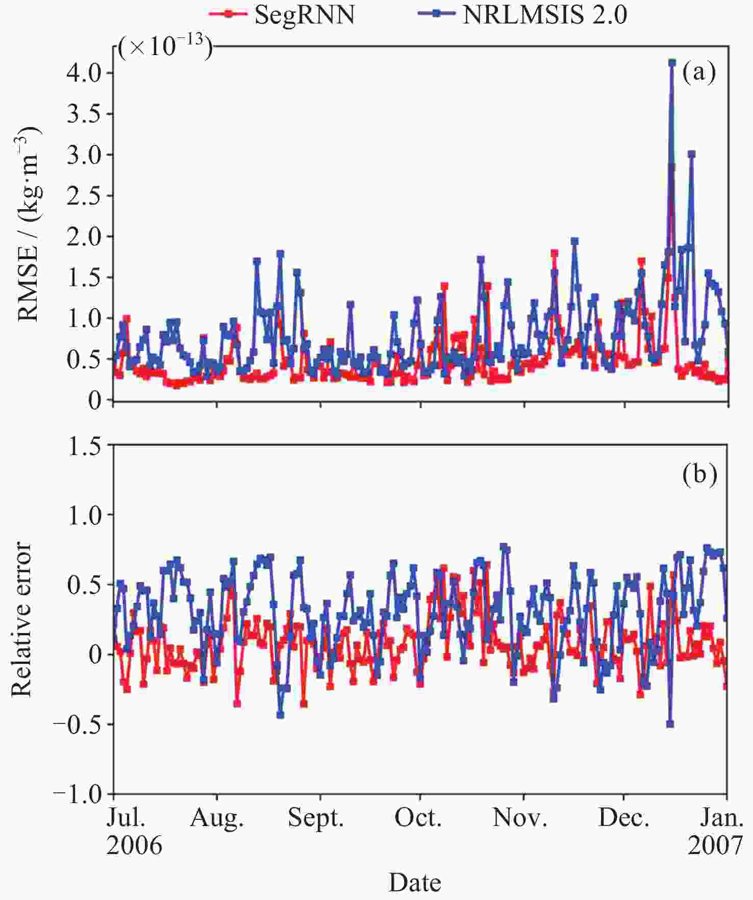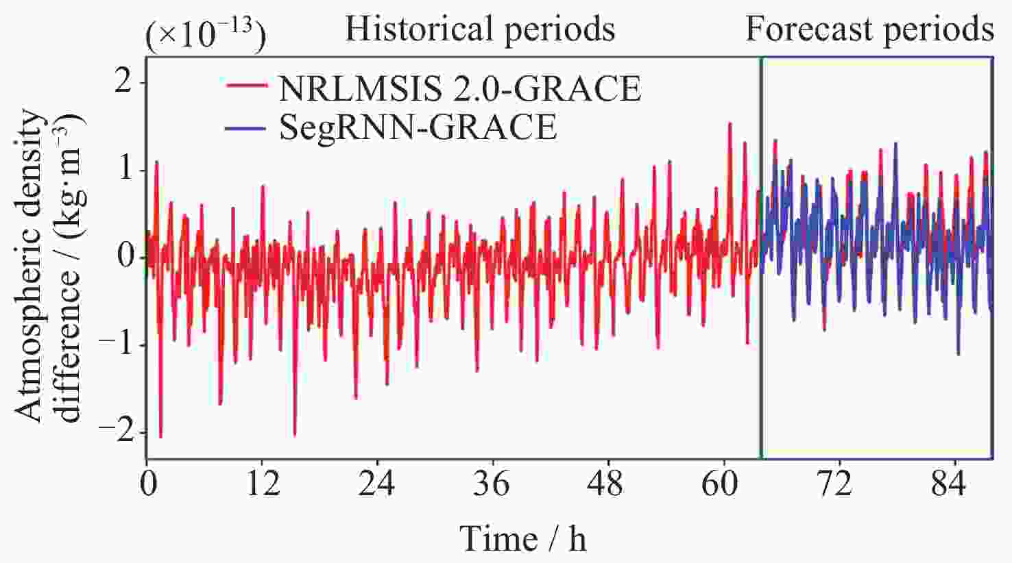Abstract: Atmospheric drag is the largest non-gravitational perturbation experienced by low-orbit satellites, and the main source of error in calculating atmospheric drag stems from inaccuracies in the empirical models of thermospheric density. Currently, these empirical models generally exhibit errors exceeding 30%. To enhance the prediction accuracy of these models, a calibration method for thermospheric density empirical models based on Segment Recurrent Neural Network (SegRNN) is proposed. This method employs the segmentation and parallelism strategies of SegRNN for model training and inference, mitigating the issues of error accumulation and gradient instability that arise from excessive iterations in traditional RNN. By analyzing the relationship between atmospheric density and external environmental parameters such as Ap, F10.7, and F10.7a, an improved neural network architecture named SegRNN with Residual Block is proposed. This architecture introduces external environmental parameters as dynamic covariates and employs a residual block to encode these covariates, thereby extracting density-related information for the prediction period and further enhancing the prediction accuracy of SegRNN. Finally, the density data derived from the onboard accelerometer of the GRACE (Gravity Recovery and Climate Experiment) satellite is used to calibrate the NRLMSIS 2.0 model. The results indicate that the original error of the NRLMSIS 2.0 model is 31.3%. After calibration with SegRNN, the error was reduced to 8.0%. By introducing dynamic covariates, the model error was further reduced to 7.2%. Ultimately, the error of the final calibrated model decreased by 24.1%, demonstrating significant calibration effects. -