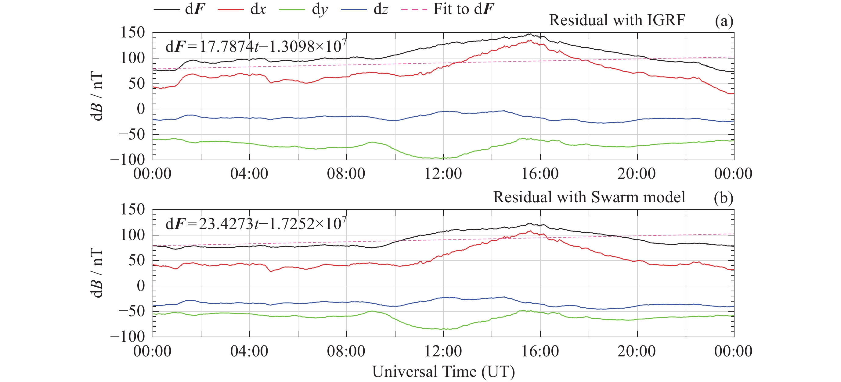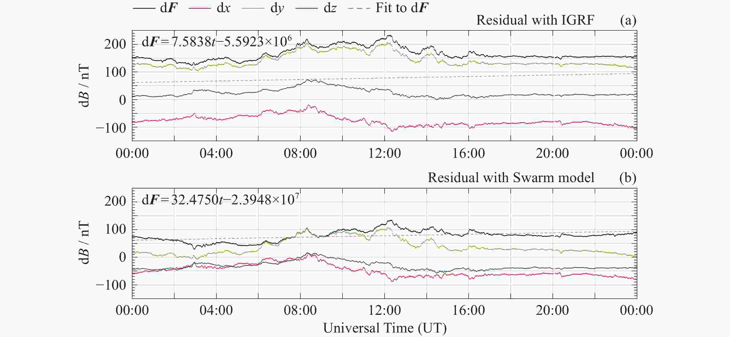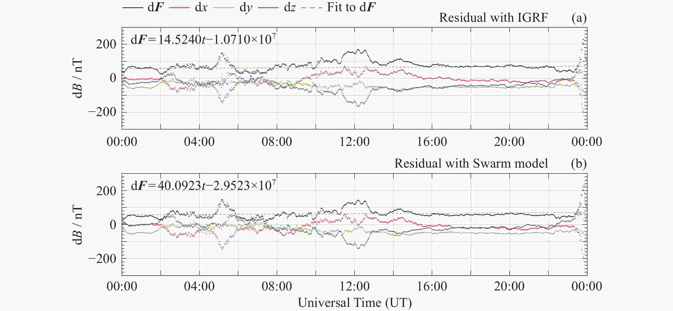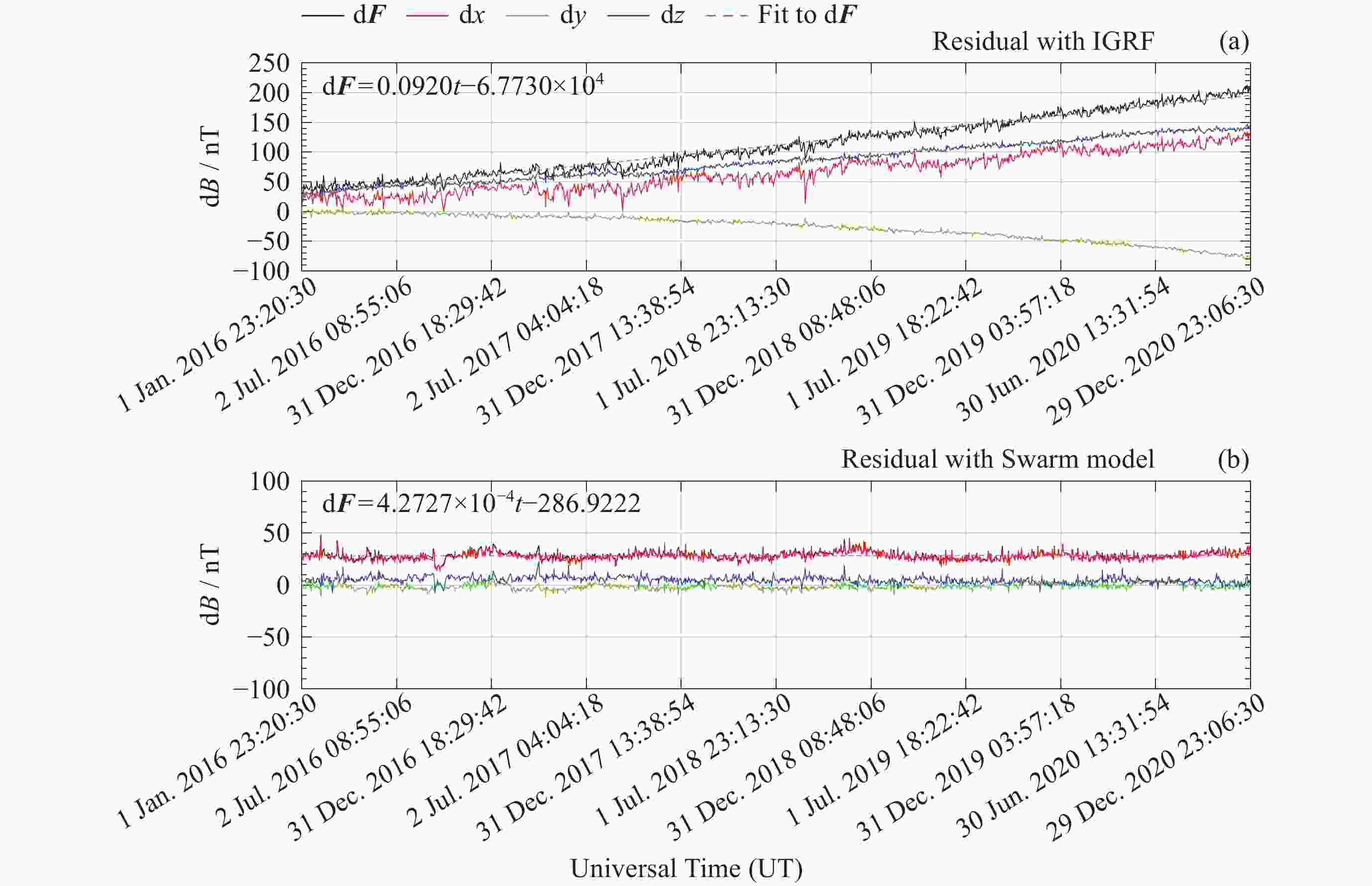 模型 d2F/nT d2x/nT d2y/nT d2z/nT Swarm 4.16735 5.2352 4.7719 4.3705 IGRF 60.6932 39.942875 33.2245 68.30735 -