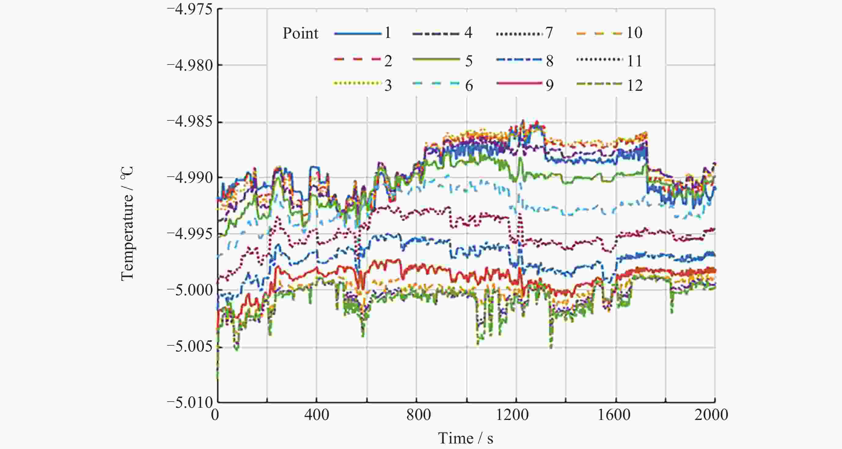 序号 加热器回路名称 加热功率/W 控温阈值/℃ 温度测控点名称 1 镜筒1 35 [–7, –5] 镜筒温度1 2 镜筒2 35 [–7, –5] 镜筒温度2 3 镜筒3 35 [–7, –5] 镜筒温度3 4 镜筒4 30 [–7, –5] 镜筒温度4 5 镜筒5 30 [–7, –5] 镜筒温度5 6 镜筒6 10 [–7, –5] 镜筒温度6 7 镜筒7 5 [–7, –5] 镜筒温度7 8 尾部X+ 15 [–7, –5] 尾部温度1 9 尾部Z+ 10 [–7, –5] 尾部温度2 10 尾部X– 15 [–7, –5] 尾部温度3 11 尾部Z– 10 [–7, –5] 尾部温度4 12 尾部Y+ 10 [–7, –5] 尾部温度5 -