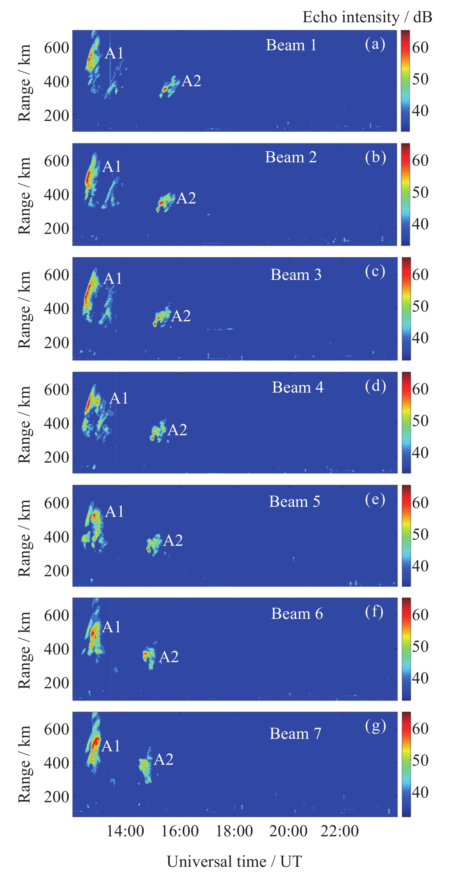 日期 电离层不规则体出现时间 (UT) 2015年3月13日 12:13 -13:23, 14:27-15:23 2015年3月14日 12:00-12:20, 13:18-15:16 2015年3月15日 12:26-12:46, 14:57-17:59 2015年3月16日 12:20-13:23, 14:49-15:29 -
