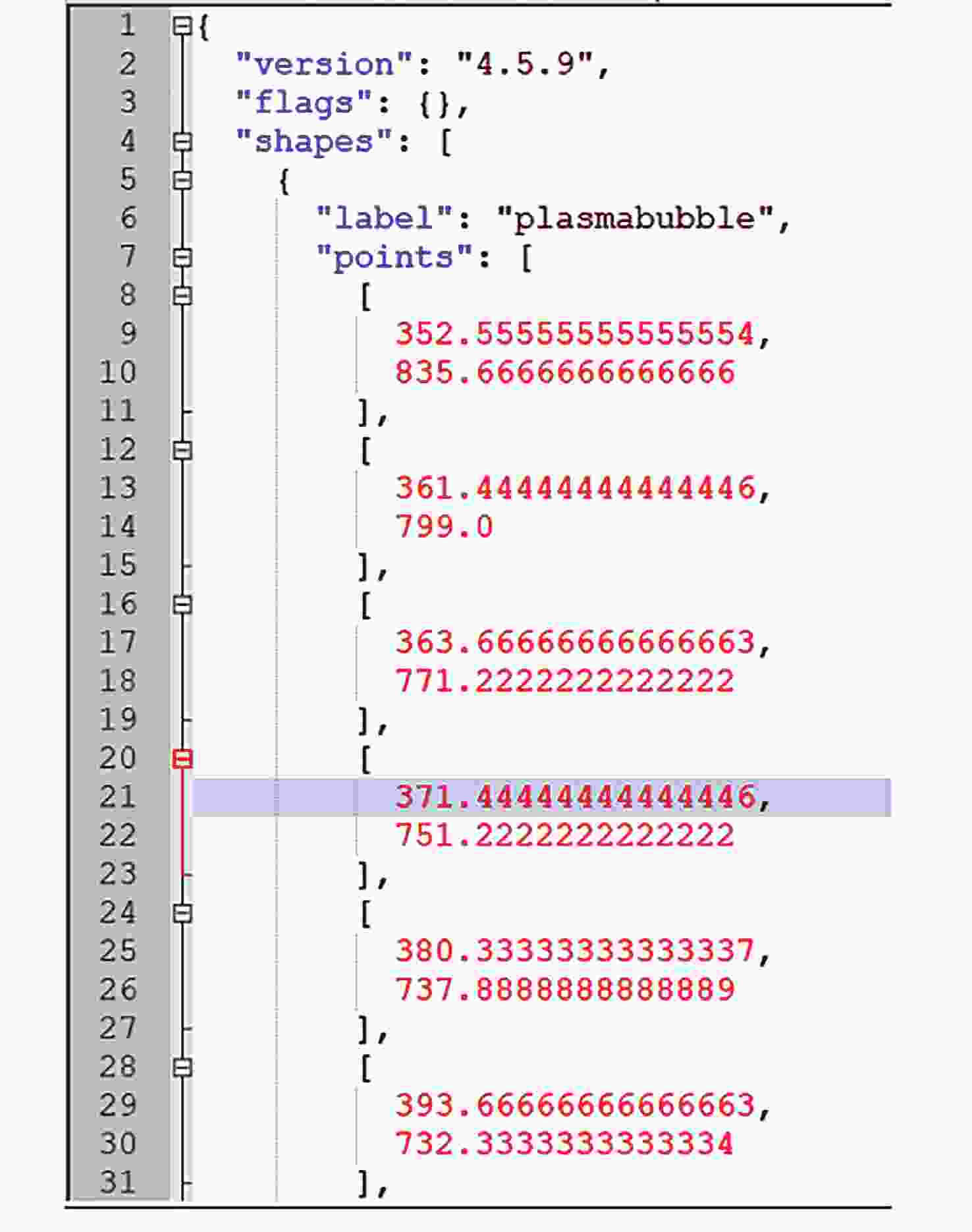 摘要: 研究构建了首个基于气辉观测的电离层等离子体泡标准数据集, 包含等离子体泡事件数据与精确轮廓标注数据. 该数据集源自云南曲靖站630 nm波段气辉成像仪历时一个完整太阳活动周(2012-2022年)的连续观测, 所有原始数据均经过图像增强、方位校正、几何畸变校正及地理坐标投影等标准化预处理, 并由专家团队完成等离子体泡事件识别及轮廓标注. 该数据集的时间分辨率高达3 min, 系统收录了不同太阳活动强度下的等离子体泡事件样本, 涵盖I形与Y形等多种典型形态. 本数据集为开发高精度监督式人工智能算法提供了高质量基准数据, 有助于促进基于气辉成像的电离层等离子体泡自动化检测与形态演化研究.Abstract: Airglow imaging observations, with their high spatiotemporal resolution and large-scale continuous monitoring capability, provide a crucial approach to studying the fine horizontal structures and evolutionary characteristics of ionospheric equatorial plasma bubbles. However, the current lack of high-quality, professionally annotated plasma bubble datasets severely restricts the application of supervised Artificial Intelligence (AI) algorithms in this field. To address this issue, this study constructs the first standardized dataset of ionospheric plasma bubbles based on airglow observations, including plasma bubble event data products and precise contour annotation data products. The dataset is derived from continuous observations over a full solar activity cycle (2012-2022) by a 630 nm band airglow imager at the Qujing Station in Yunnan, China. All raw data underwent standardized preprocessing, including image enhancement, azimuth correction, geometric distortion correction, and geographic coordinate projection. Expert teams then performed plasma bubble event identification and contour annotation. With a high temporal resolution of 3 minutes, the dataset systematically documents plasma bubble events under varying solar activity intensities, covering multiple typical morphologies such as shaped I- and Y-shaped structures. This dataset provides high-quality benchmark data for developing high-precision supervised AI algorithms, facilitating automated detection and morphological evolution research of ionospheric plasma bubbles based on airglow imaging.
