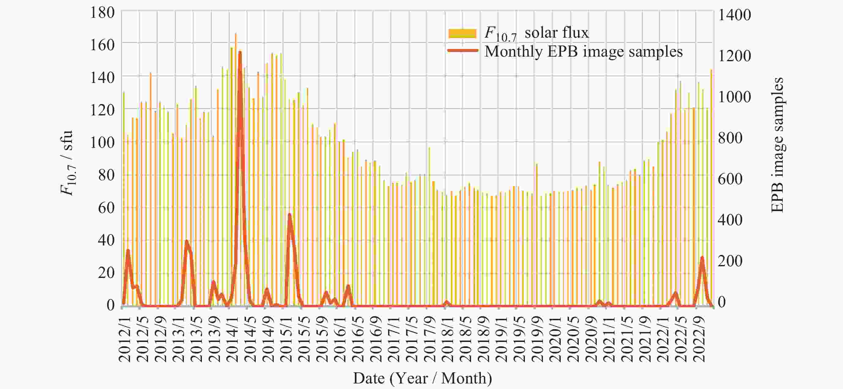 图 12 等离子体泡样本逐年逐月分布与太阳活动水平的关系[25]