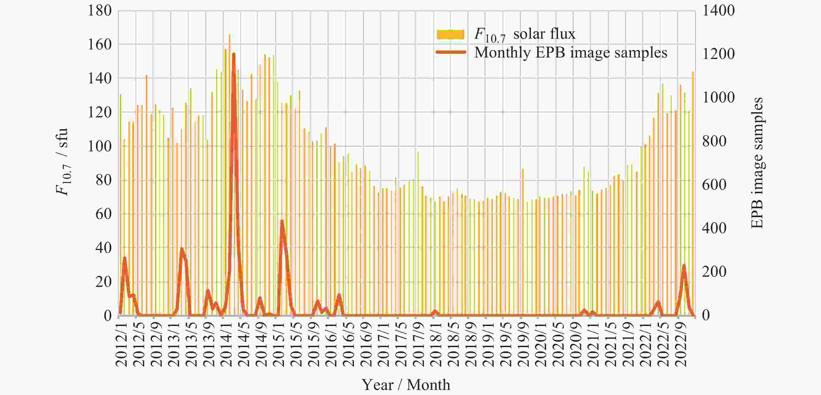 图 12 等离子体泡样本逐年逐月分布与太阳活动水平的关系[26].