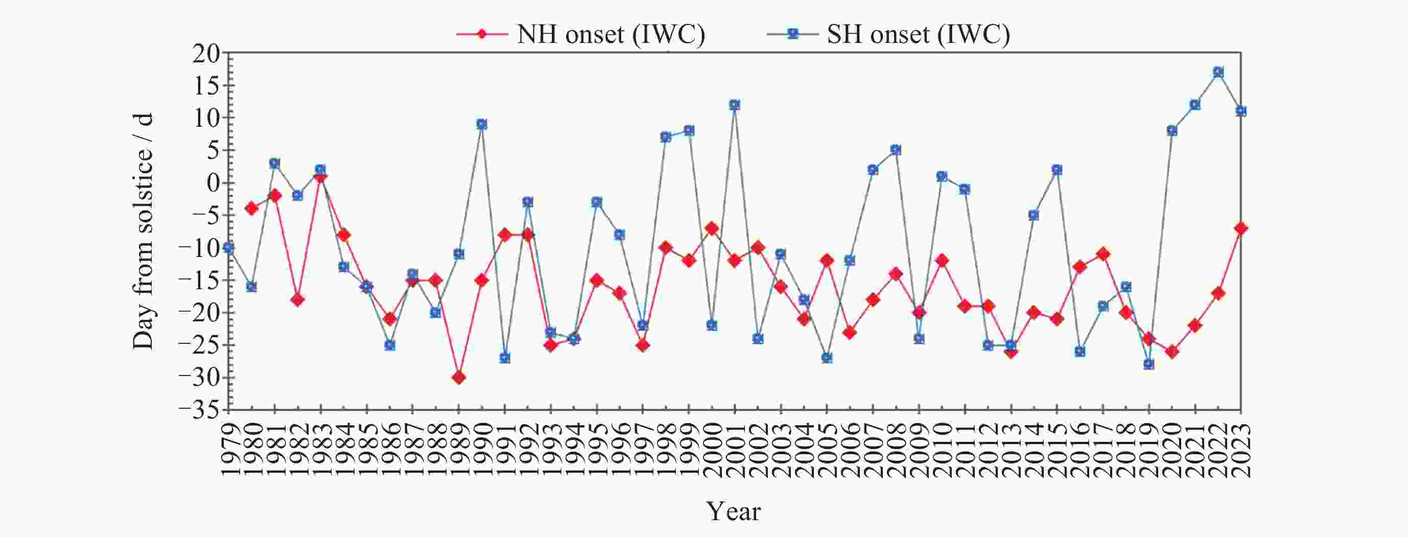 • 图  1  1979-2023年南北半球的夜光云季起始时间
