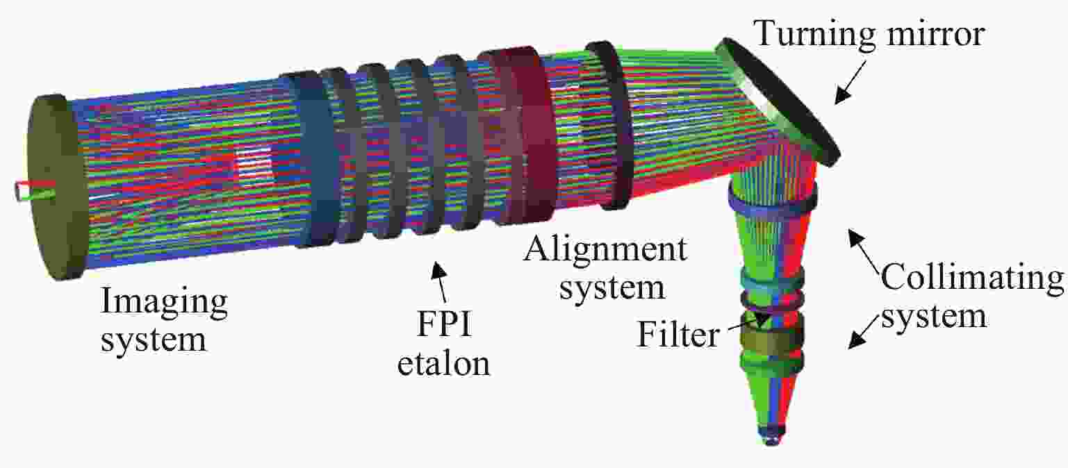 • 摘要: Fabry-Perot干涉仪(FPI)是较为重要、广泛应用的临近空间风场探测手段, 为弥补中国在天基FPI测风方面的空白, 中国科学院国家空间中心研发了一种星载FPI测风仪. 对此星载FPI测风仪的光学、结构与温控设计、光学仿真及结果进行分析. 根据宽波段的探测需求, 分析光学设计, 并对其成像系统进行像质评估. 基于光学仿真数据, 对星载FPI仪器进行风速反演与精度分析, 在557.7 nm和762.0 nm两个波段的风速误差分别为-1.722 m·s–1和-2.3672 m·s–1, 表明该星载仪器设计符合测风要求. 根据仪器的结构设计特点和成像部分温控方案, 提出一种平移式滤光片切换装置, 采用梯形螺杆加微型减速步进电机或微型直线电机驱动. 进而探讨了仪器核心组件标准具的控温精度与测风误差的关系, 采用了主被动相结合的设计, 降低温度变化对结果的影响, 并进行了仿真验证.