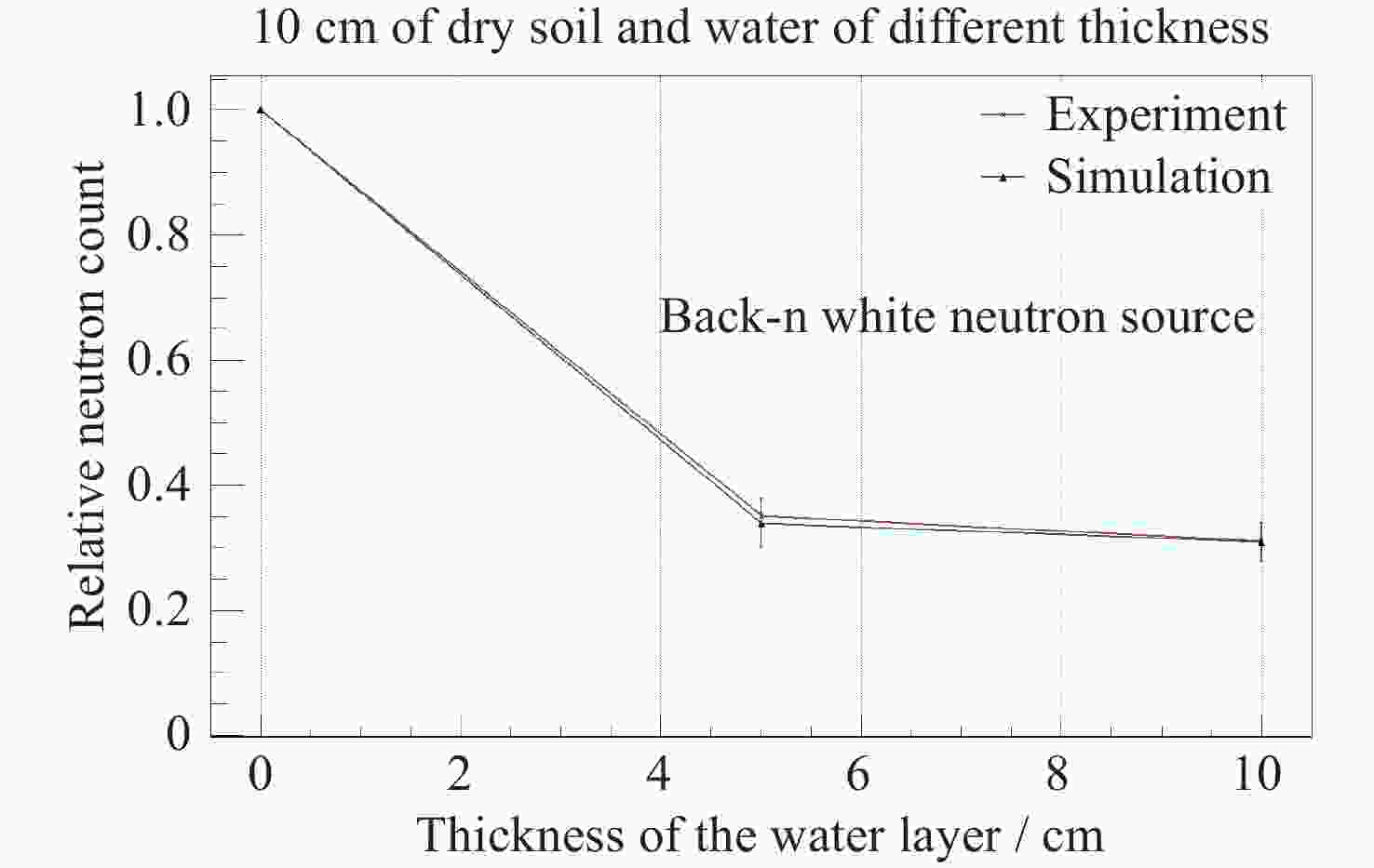 实验 模拟 能量范围/keV 1层土 1 1 12.6~25.1 1层土+1层水 0.3513±0.00466 0.3389±0.039 39.8~63.1 1层土+2层水 0.3103±0.00438 0.3086±0.031 100~199.5 -