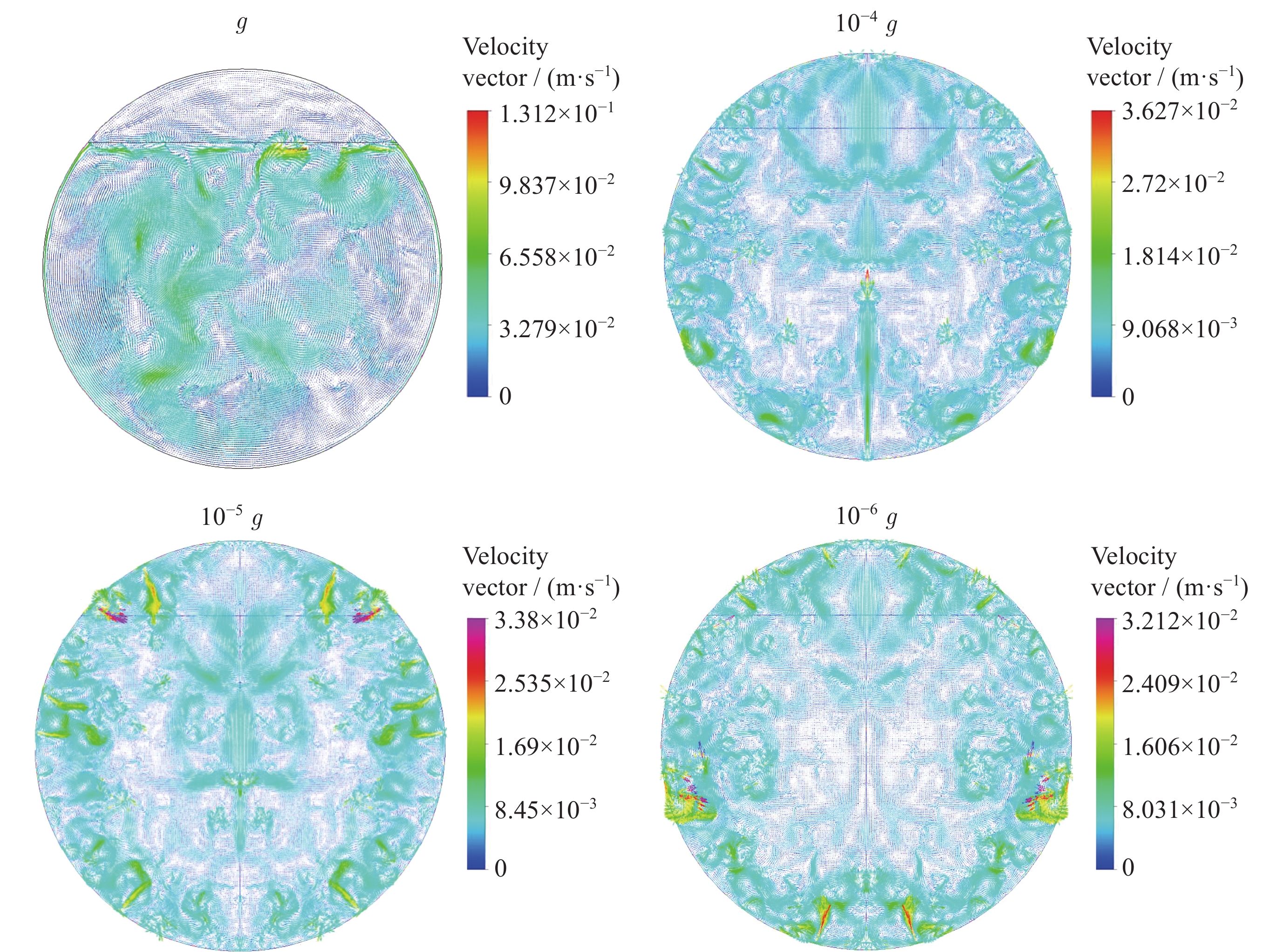 The cryogenic liquid krypton tank will be in microgravity environment for more than several hundred seconds during MECO (Main Engine Cut-off) phase, its internal heat transfer and phase change have an important impact on the performance of the storage and supply system of the large orbit transfer vehicle. To investigate the pressure variation and temperature distribution of on orbit cryogenic liquid krypton tank in microgravity conditions, establishing a CFD model of cryogenic liquid krypton tank, the effects of gravity level, initial liquid krypton temperature and initial filling rate on the thermal stratification and pressure variation of liquid krypton tank in microgravity conditions were studied by using VOF method and Lee gas-liquid phase change theory. The results show that, in the microgravity conditions, the tank pressure rise rate are lower than that in the ground condition, a smaller gravity causes a smaller tank pressure, and the pressure rise rate of tank under g0 is 1.84 times, 1.98 times and 2.04 times of 10–4 g0, 10–5 g0 and 10–6 g0 respectively, and the degree of temperature stratification (2~3 K) is much lower than that of ground condition (90 K). Under the microgravity level of 10–4 g0, the tank pressure decreases first and then increases gradually with time at different initial liquid krypton temperatures (133.5 K, 134 K, 134.5 K), and the lower the initial liquid krypton temperature is, the smaller the pressure rise rate of the cryogenic liquid krypton tank is. Under the microgravity level of 10–4 g0, there is a critical initial fill ratio (70%) of the cryogenic liquid krypton tank. When the initial fill ratio is larger than the critical value, the pressure rise rate increases with the increase of the initial fill ratio, and when the initial fill ratio is lower than the critical value, the pressure rise rate of the tank decreases with the increase of the initial fill ratio.