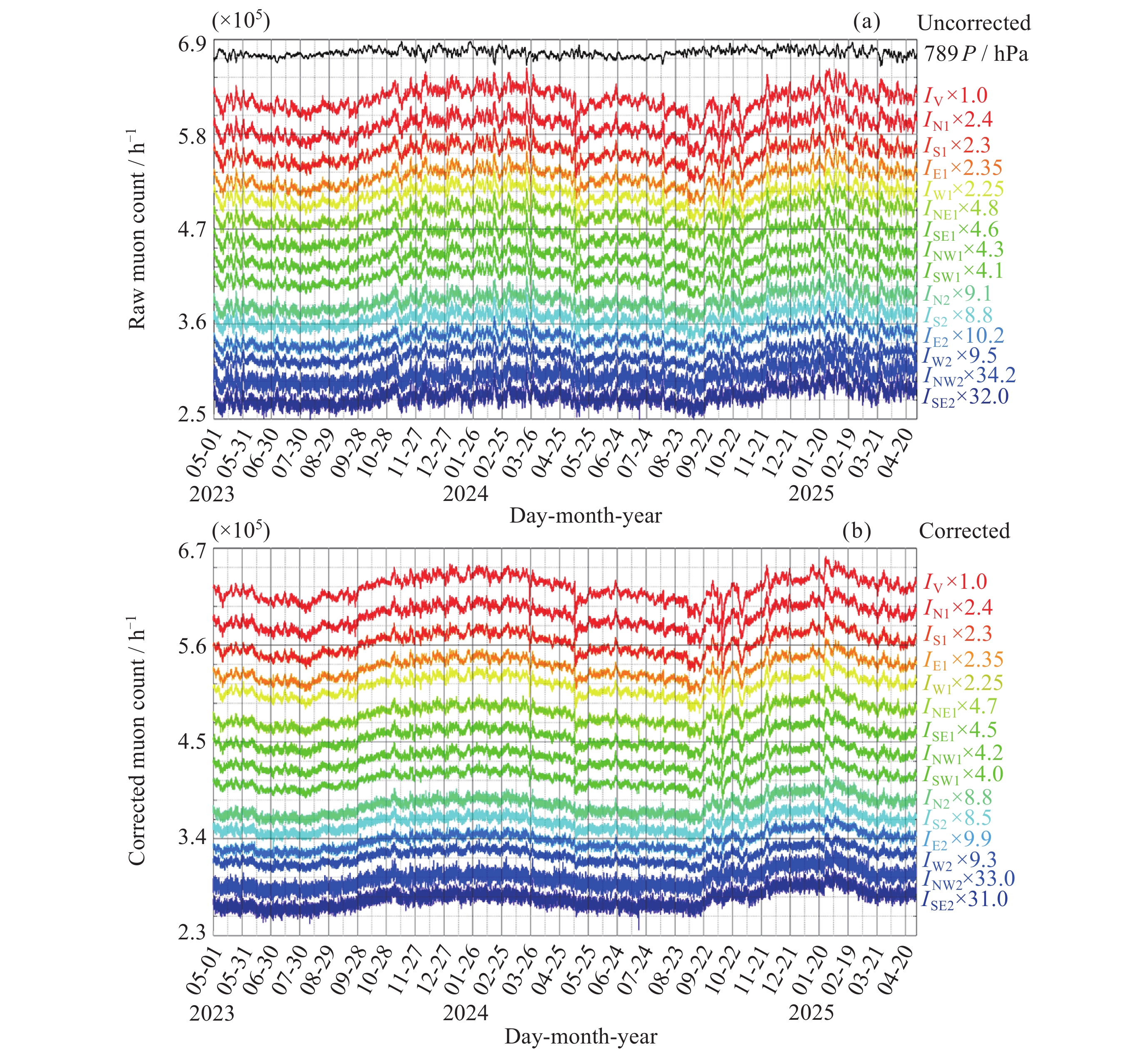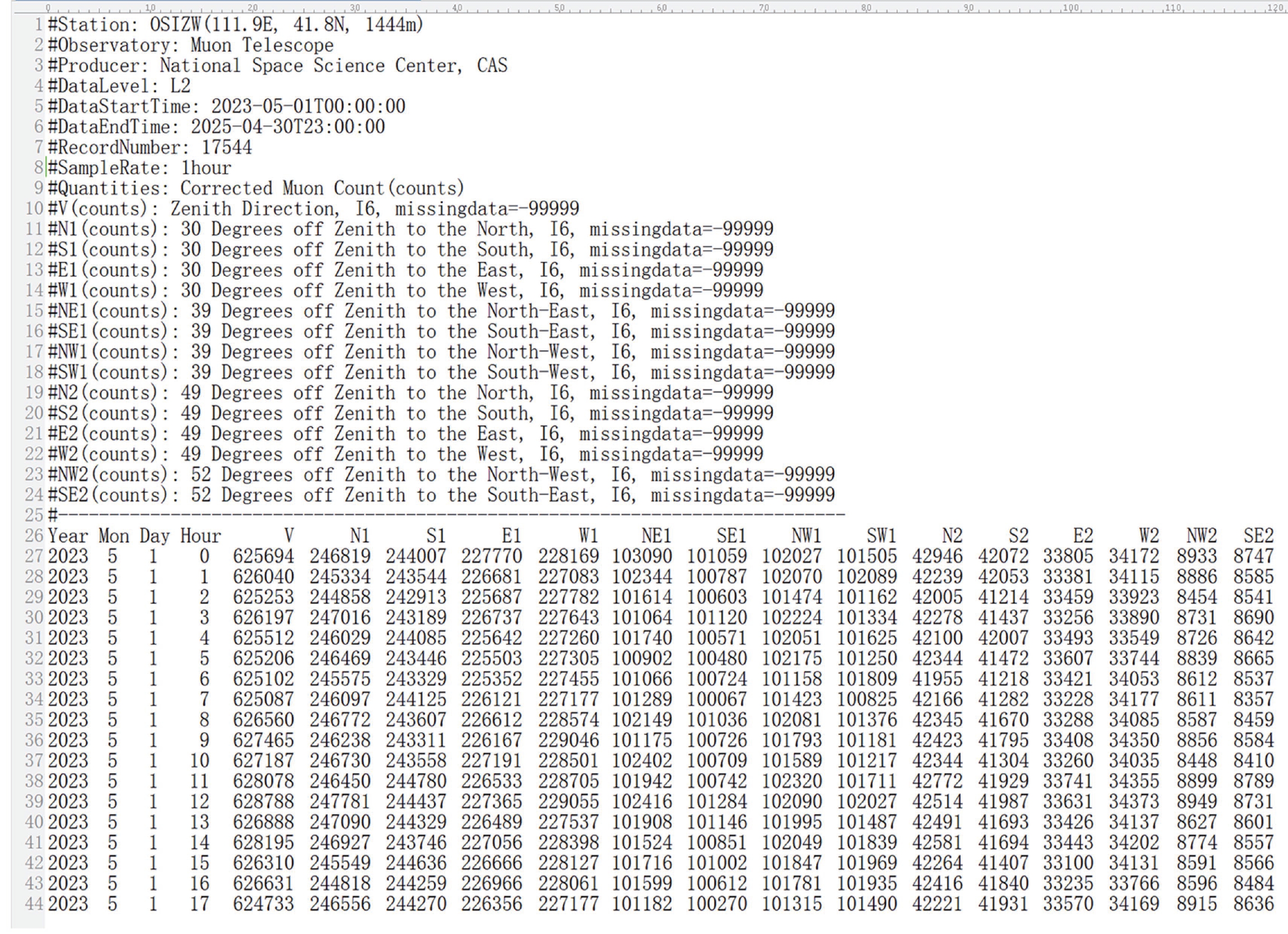 CHENG Yonghong, ZHONG Qiuzhen, ZHUANG Chunbo, SHI Liqin, SONG Xiaochao, WANG Jing, SHEN Hua, WEI Lihang. Cosmic Ray Muon Count Dataset from Siziwang Station in Inner Mongolia (2023-2025) (in Chinese). Chinese Journal of Space Science, 2026, 46(2): 1-11. doi: 10.11728/cjss2026.02.2025-0133.